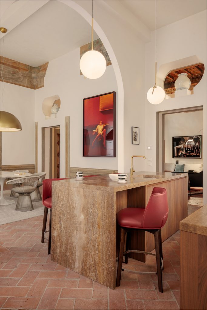 En un viejo edificio del siglo xv en Florencia, Italia, Pierattelli Architetture rediseñó un departamento de 240 m2 en medio de un barrio que destaca por sus calles estrechas y un crisol de pequeños talleres artesanales, bares, boutiques, bistros y restaurantes. La encomienda fue puntual: rediseñar el departamento para que fuera elegante y funcional, al tiempo que destaca la identidad ecléctica del sitio.