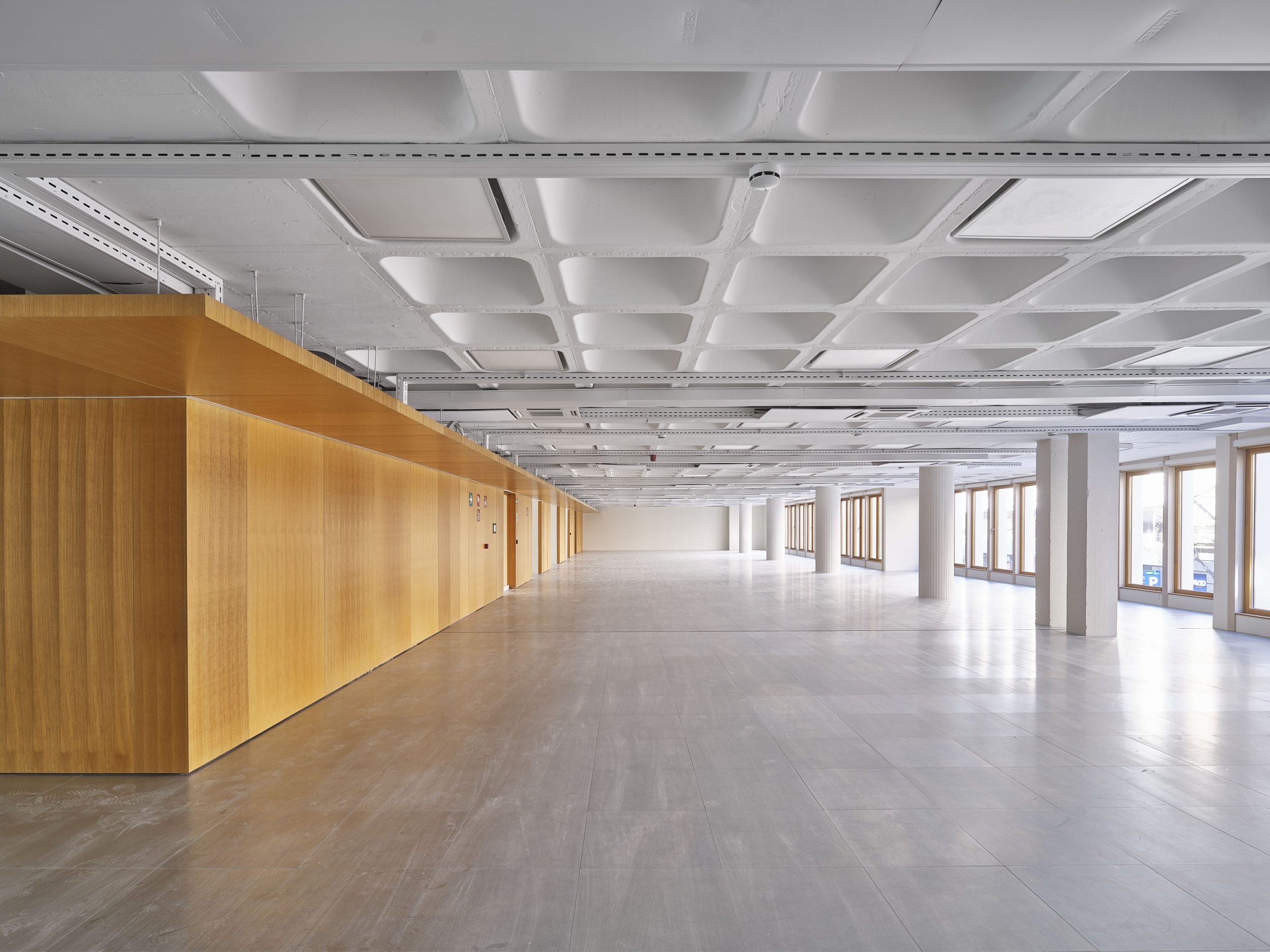 Los interiores, con más de 8,300 m² destinados a espacios de trabajo, integran instalaciones y elementos fijos al núcleo del edificio, liberando el perímetro y elevando la experiencia de los usuarios: amplitud, luz, confort y una continuidad visual con el paisaje exterior.