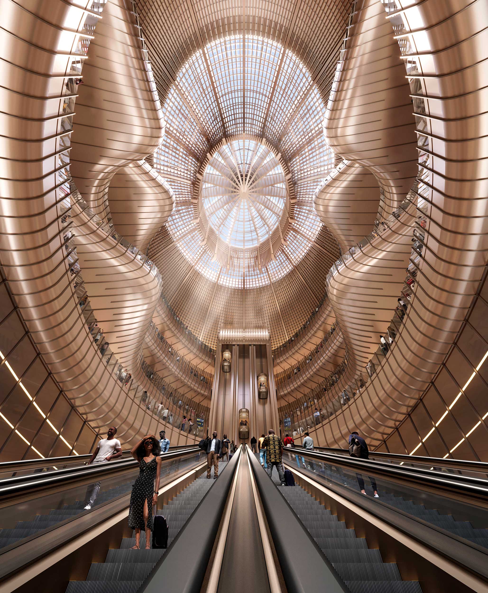 Bishoftu International Airport marca un punto de inflexión en la infraestructura aérea del continente africano. Diseñado por Zaha Hadid Architects para Ethiopian Airlines, el proyecto se ubica a 40 kilómetros al sur de Addis Abeba y ya ha iniciado su construcción. Con una inversión de 12.5 mil millones de dólares, se consolida como el aeropuerto más grande en la historia de África.