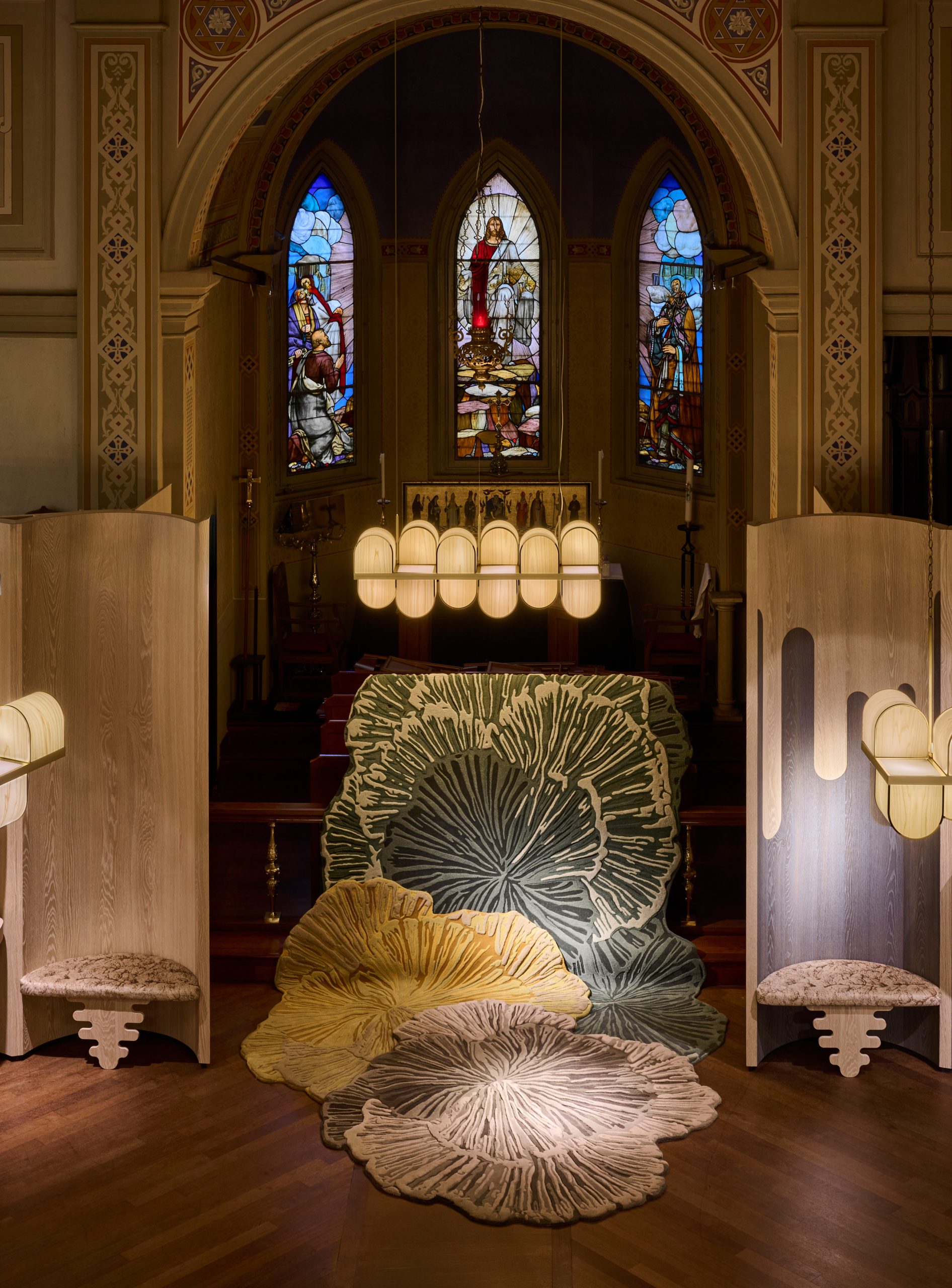En la All Saints Anglican Church de Milán, Bodo Sperlein reúne a firmas internacionales en una instalación que convierte el espacio expositivo en una narrativa material y sensorial.