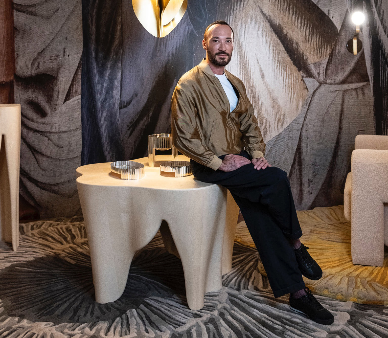 Fundador de su estudio en Londres, Bodo Sperlein ha desarrollado un lenguaje que combina artesanía, investigación material y una visión escultórica del objeto. Su trabajo abarca iluminación, mobiliario, textiles e interiores, consolidando una práctica que privilegia la durabilidad y el diálogo entre tradición y contemporaneidad. Con MENU, esta filosofía se traslada al ámbito expositivo, donde la arquitectura se convierte en el medio para articular colaboraciones complejas y experiencias inmersivas.