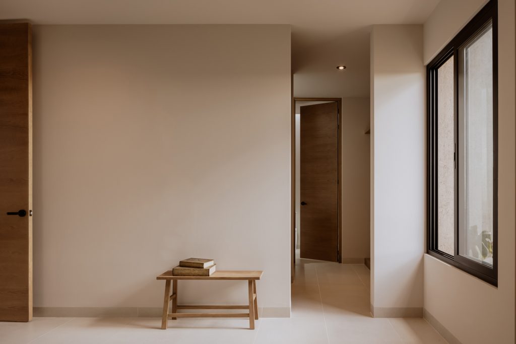 El baño completo de esta habitación, además de estar muy bien iluminado con luz natural, encontramos un espacio dentro del área de regadera complementado con una banca que hace este espacio único. Las dos habitaciones secundarias son amplias, tienen ventilación e iluminación natural y cuentan cada una con vestidor y baño completo. Todos los detalles de Casa Cantera 5, de inicio a fin, fueron diseñados con el deseo de que sus habitantes pudieran habitar en la comodidad y unidad.