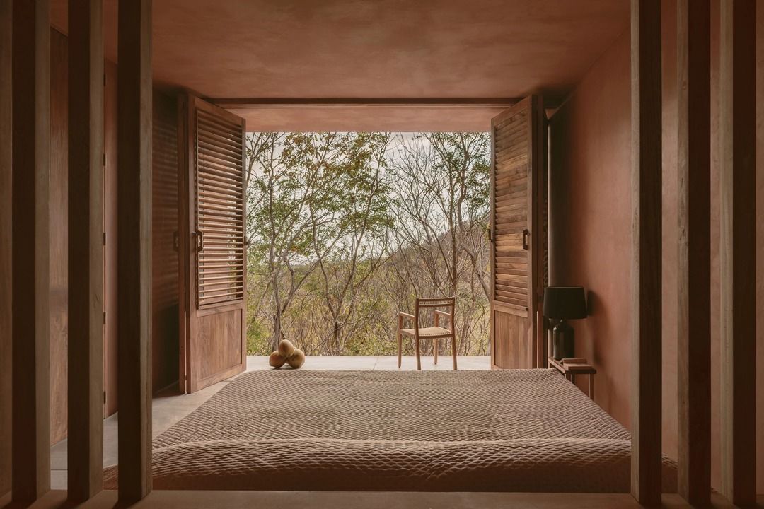 La paleta de materiales de Casa Tobi incluye tonos tierra, piedra natural y texturas orgánicas que hacen eco del entorno árido y cálido de Puerto Escondido. Estos colores evocan los atardeceres tropicales y rinden homenaje al paisaje costero, mientras que los detalles acuáticos que aparecen a lo largo del recorrido recuerdan las cascadas de Hierve el Agua, ícono natural del estado de Oaxaca.