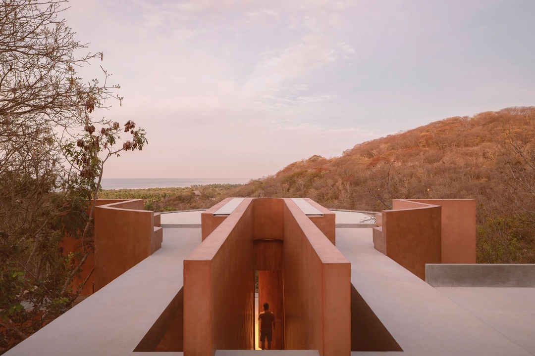 Casa Tobi, diseñada por el estudio Espacio 18, es una residencia contemporánea situada en la costa de Puerto Escondido, Oaxaca, donde la arquitectura responde de forma sensible al terreno y a su entorno natural. Ubicada en una ladera con fuerte pendiente orientada al oeste, la vivienda ofrece vistas ininterrumpidas del océano Pacífico y espectaculares atardeceres oaxaqueños.