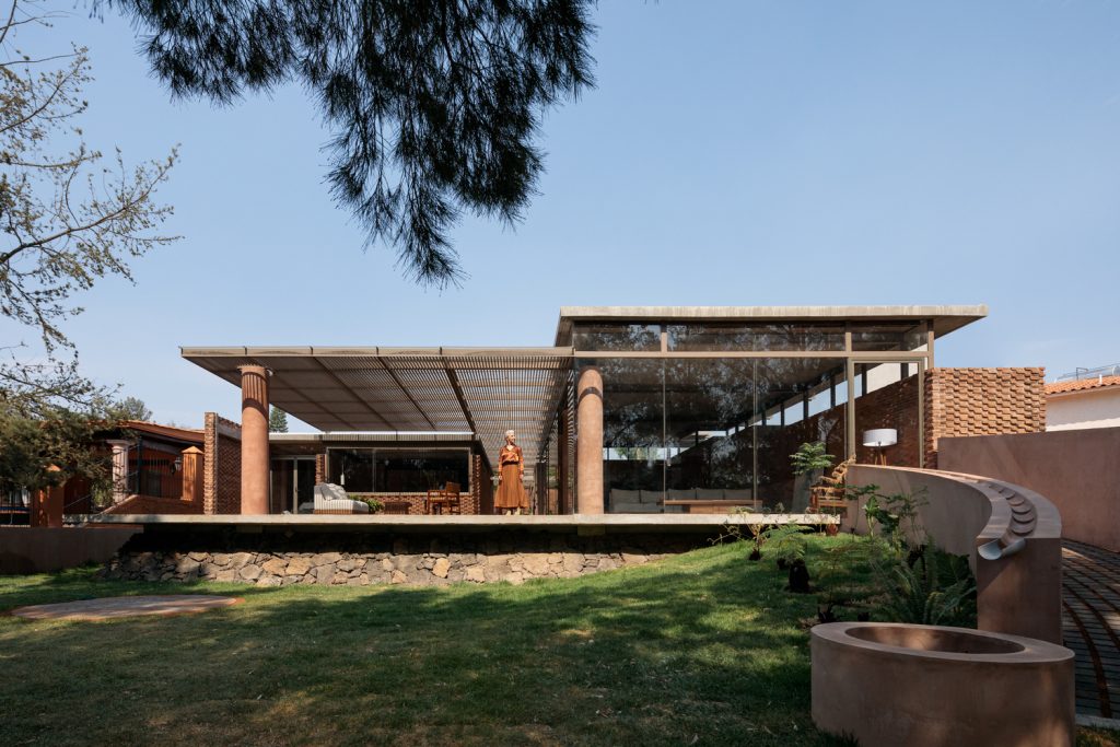 La casa se abre solo hacia una hilera de cipreses que se encuentran al fondo del sitio por medio de una gran rampa que conecta a la sala con el jardín. A los lados y al frente, ésta se cierra para conservar privacidad y mantener el silencio.