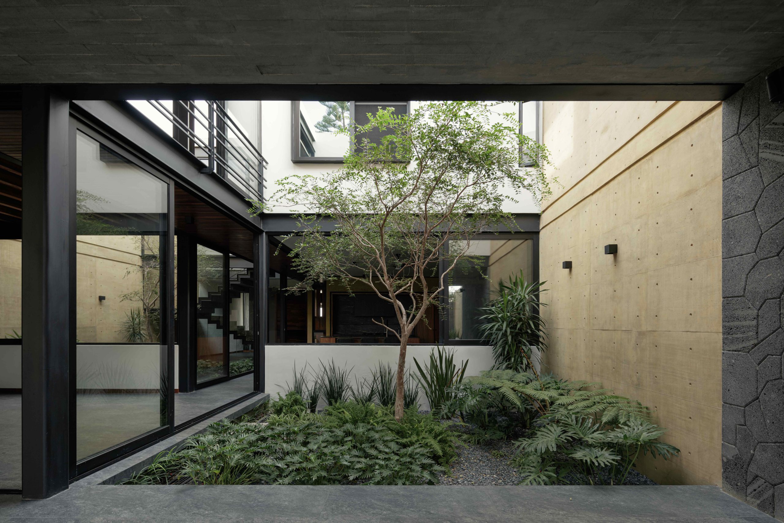 En los patios interiores de Casa Zibu, la vegetación y la luz natural generan atmósferas de contemplación y frescura.