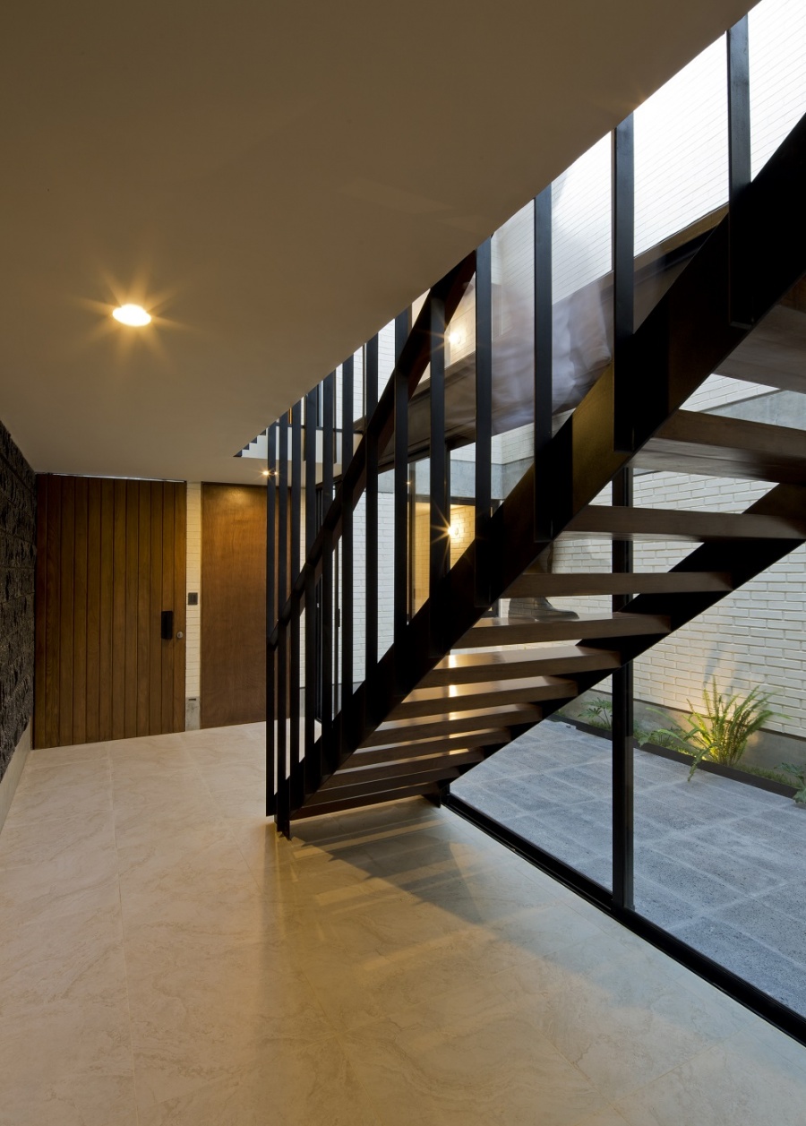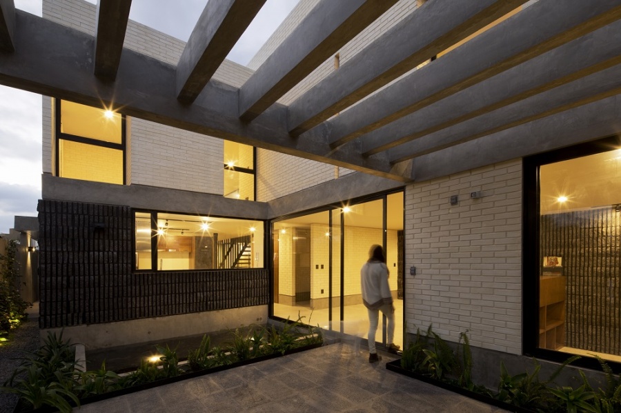 Asimismo, el patio central desempeña un papel esencial de esta, pues es el área que hace circular el aire y provee luz a lo largo del inmueble. Si hay algo que caracterice a este proyecto es la facilidad que otorga para la creación de espacios habitables adicionales, por ejemplo, pueden adaptarse de dos a cuatro habitaciones, una sala de televisión y diversos espacios exteriores que se suman a los ya establecidos desde un inicio y, por supuesto, al resto de los cuartos que conforman la casa (cocina, baños, sala, etc.).