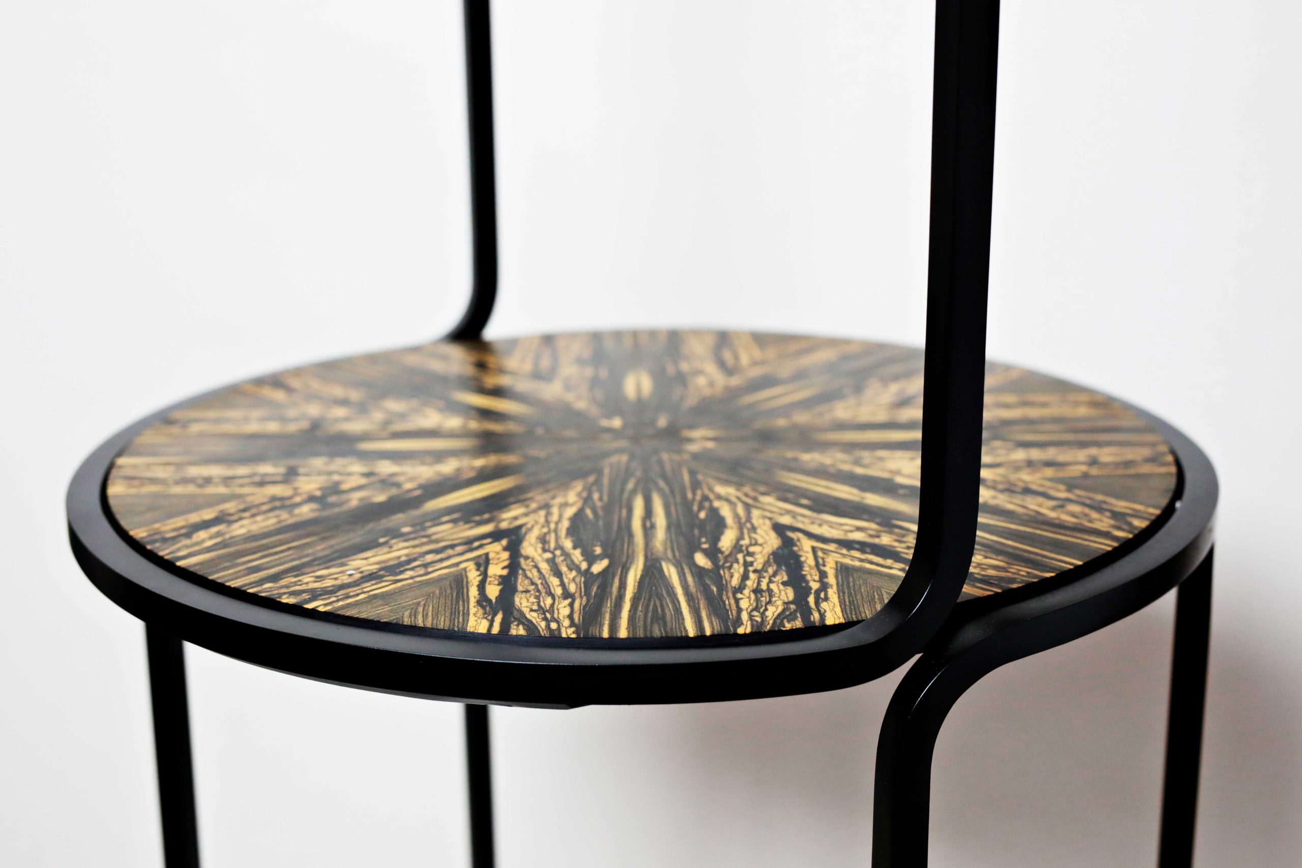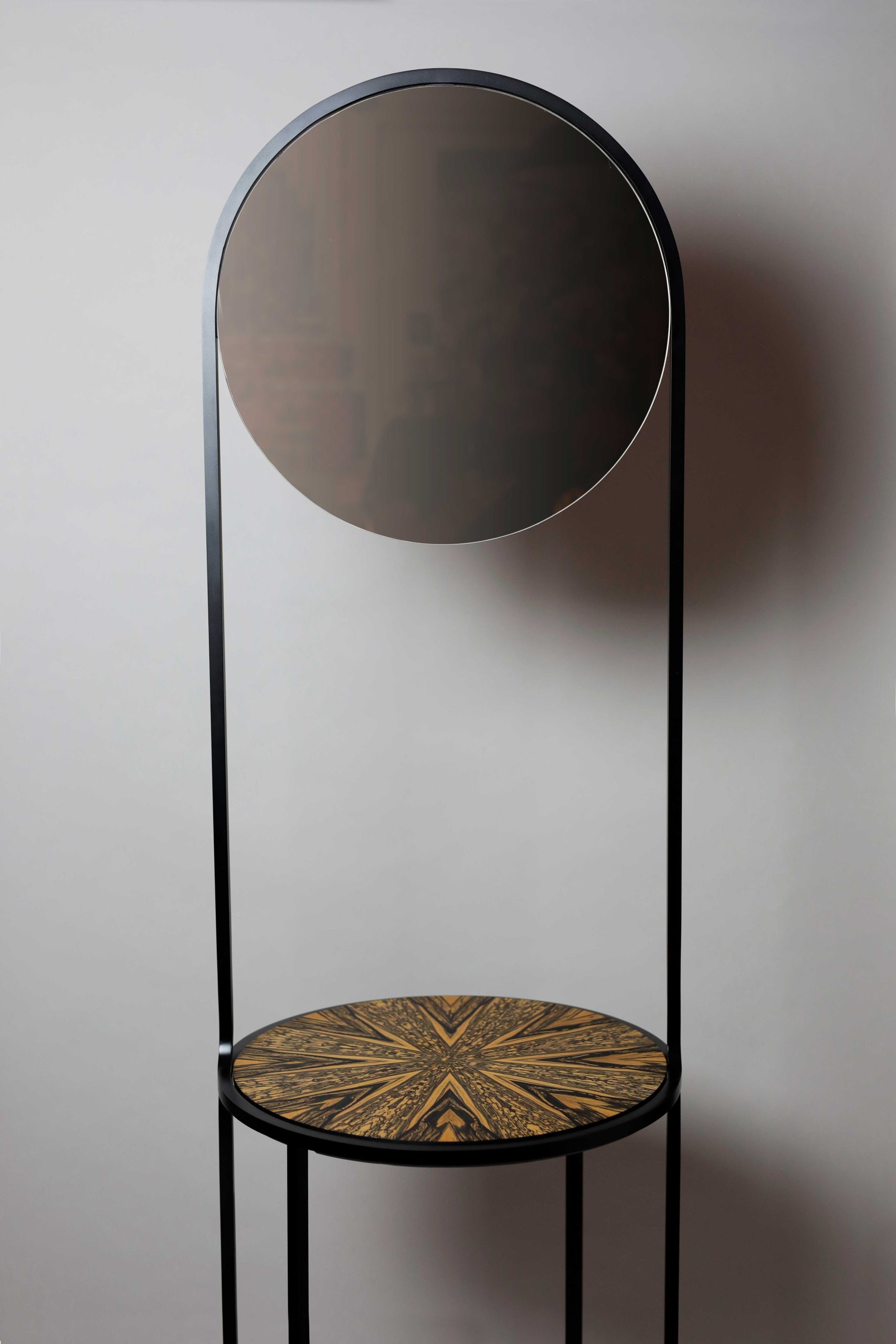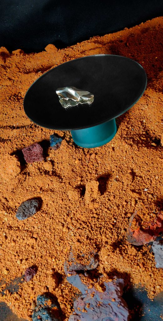La Console, concebida como pieza única, sintetiza la visión de Clémence Birot sobre el diseño como acompañante de los rituales cotidianos. Su estructura metálica curva dialoga con un espejo vertical y un plateau en ébano blanco, creando un objeto pensado para envejecer con dignidad, conservarse y transmitirse. Aquí, la artesanía se manifiesta como inteligencia de la mano y como valor cultural.