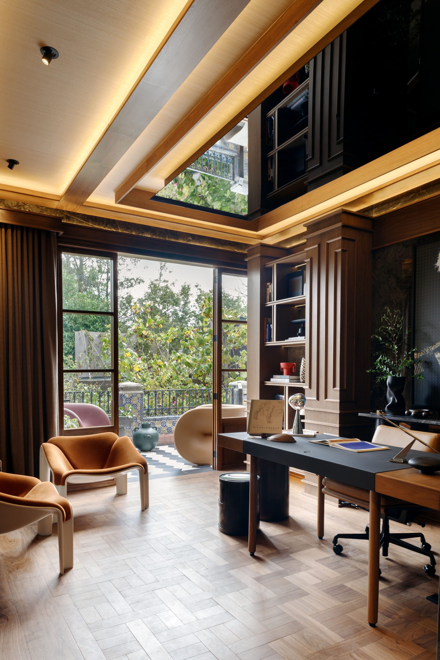 Ese gesto sintetizaba con claridad el espíritu de Design House 2025: una edición donde la colaboración no fue un requisito, sino una convicción compartida que se percibía en cada sala y en cada conversación. La mezcla entre diseño contemporáneo, referencias al ferrocarril y una simetría afrancesada construyó un ambiente que oscilaba entre gabinete íntimo y salón histórico.