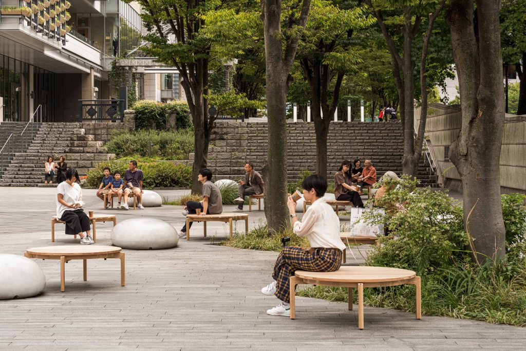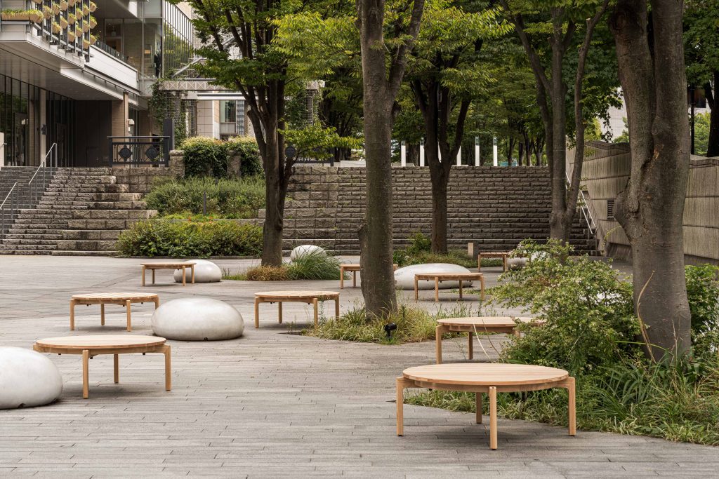 El mobiliario de Blue Bottle Coffee Minatomirai Cafe se conforma de: