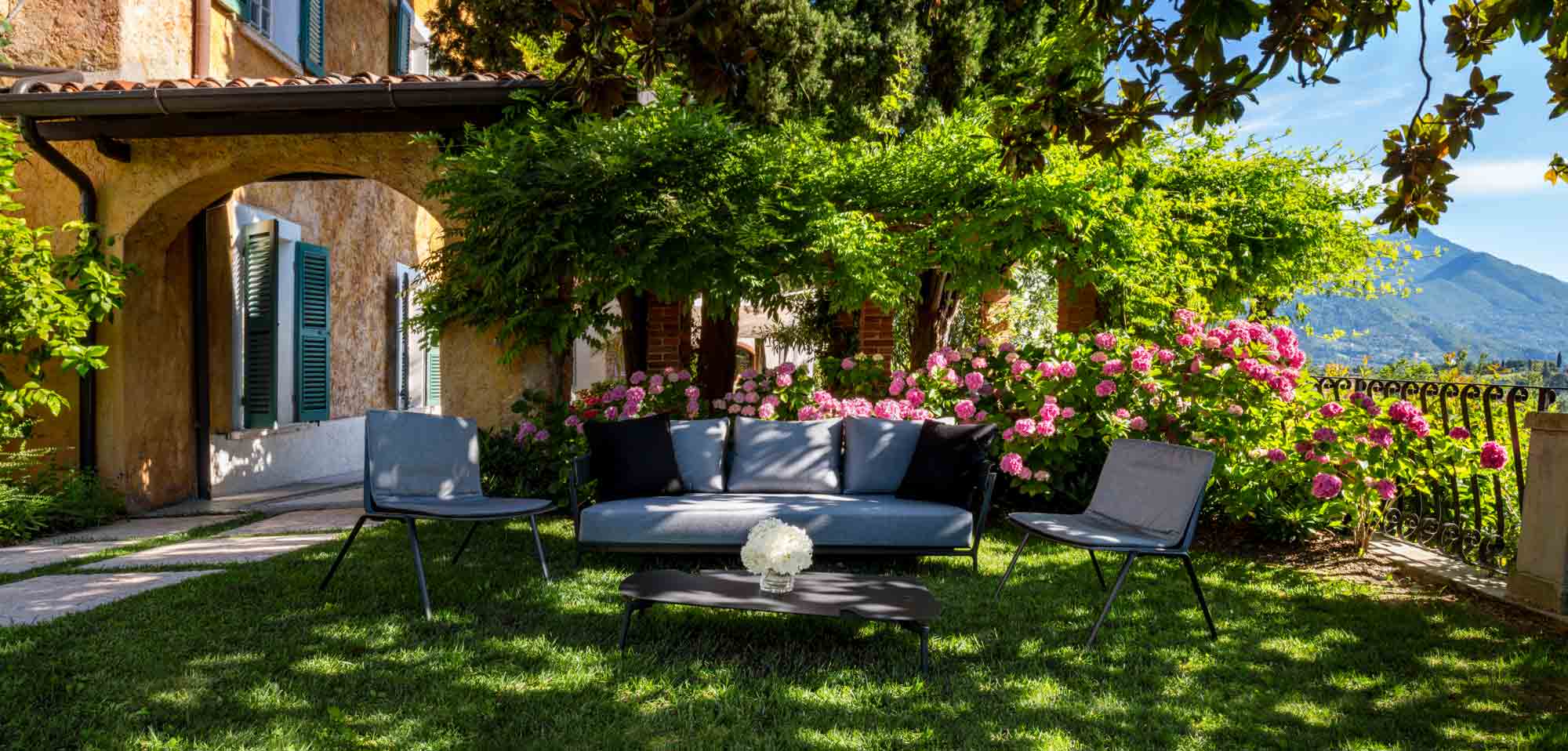 Gracias al diseño sobrio y atemporal, el mobiliario de Fast sabe adaptarse perfectamente incluso en ambientes históricos como el del Borgo Il Mezzanino, donde se crea auténticas islas de relajación en medio de una naturaleza romántica y única como la del Lago Di Garda.