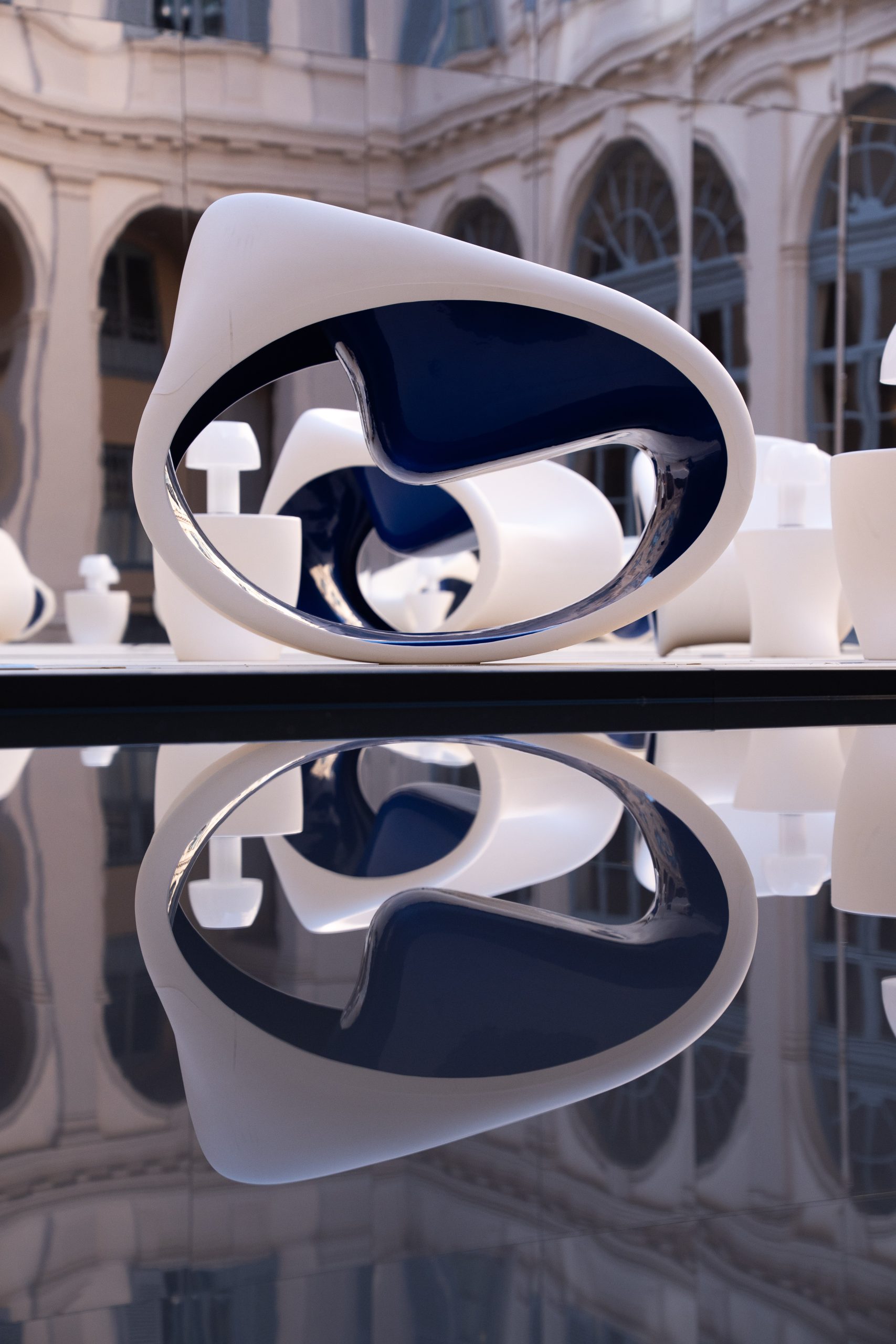 Estas piezas dialogan con otras obras de diseñadores como Ron Arad, Tokujin Yoshioka, Christophe Pillet y Konstantin Grcic, configurando un recorrido que explora la manera en que gestos cotidianos —sentarse, conversar o detenerse— construyen la experiencia del espacio.