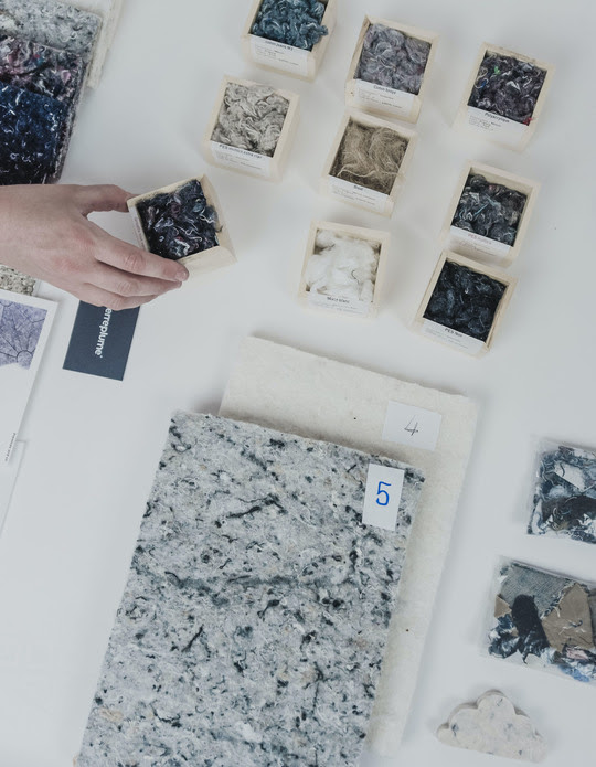 Reinventar el reciclaje textil a través del diseño, ese es ni más ni menos el reto asumido por Pierreplume. Con sus paneles de revestimiento de paredes que parecen piedras reales, los 3 jóvenes fundadores, Amandine Langlois, Jérémie Triaire y Camille Chardayre, han inventado un absorbente de sonido ligero y fácil de instalar, hecho de residuos textiles reciclados. Su gama, que incorpora variaciones de tonos minerales a través de la simple interacción de capas de tela, se presta a todos los proyectos arquitectónicos y de diseño. Esta “piedra” de peso pluma tiene una larga vida por delante.