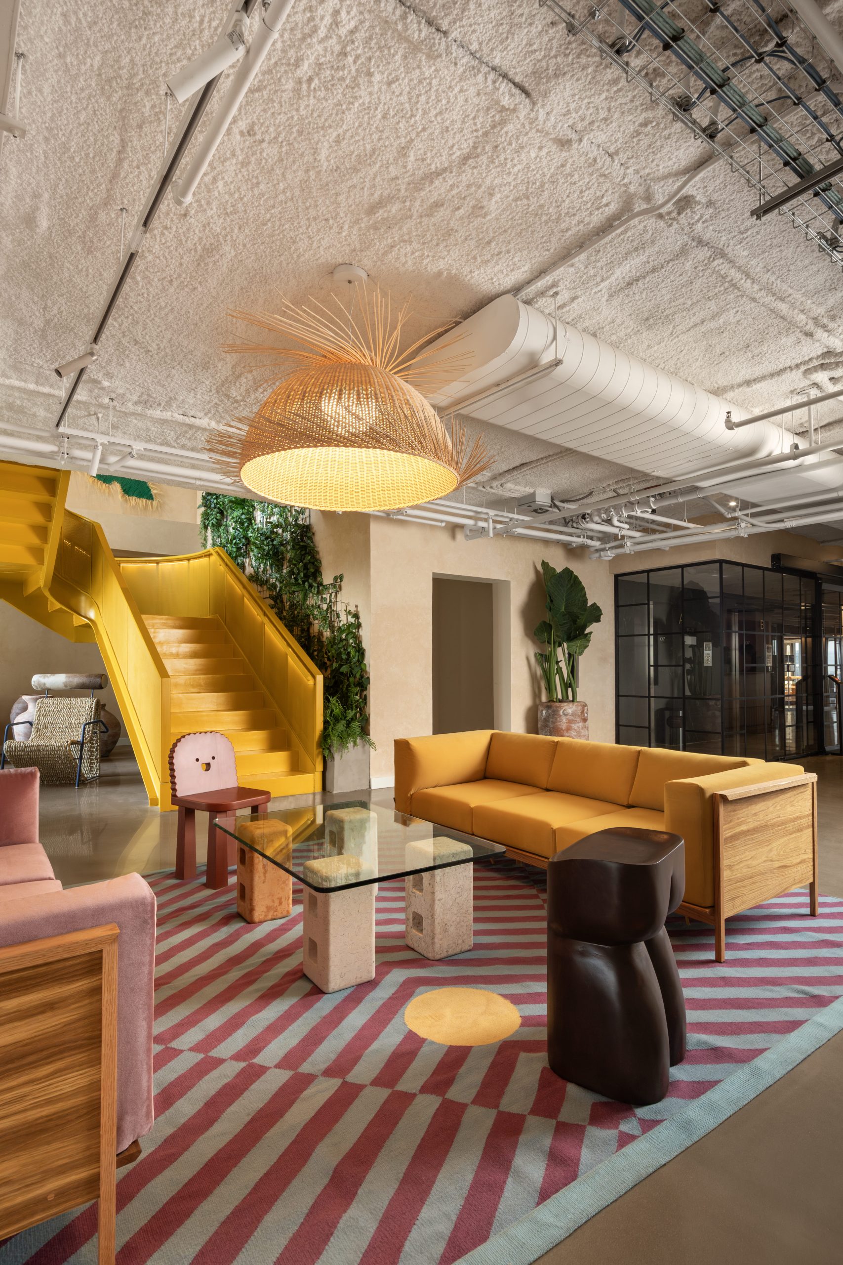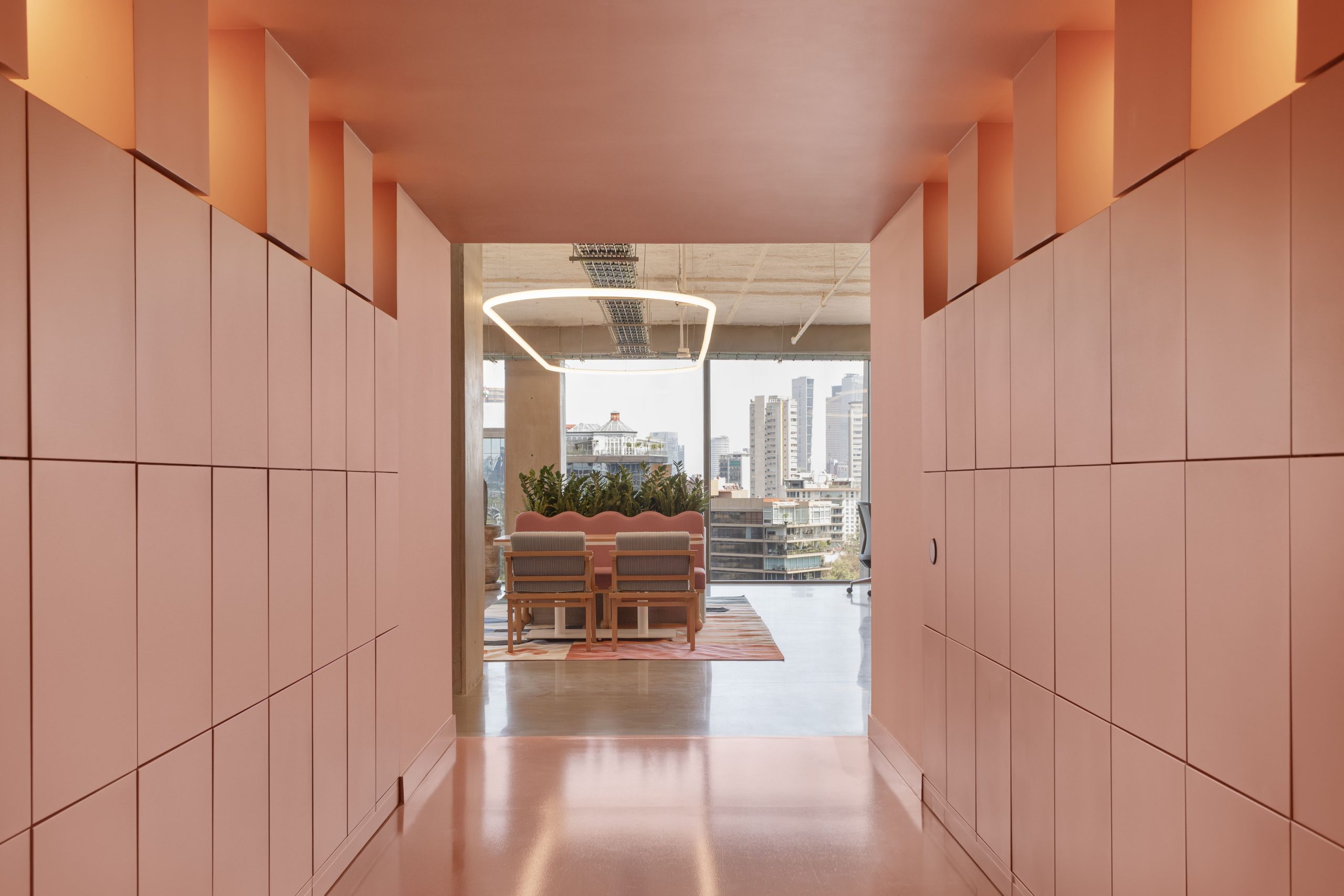 Inspirada en la herencia artística y arquitectónica del país, la oficina fusiona referencias del brutalismo, la cerámica tradicional, las técnicas de tejido y la paleta cromática de Luis Barragán, logrando una materialidad táctil, vibrante y emocional. Cada rincón es un homenaje a la artesanía mexicana, con piezas únicas creadas por diseñadores y artistas locales que aportan una narrativa auténtica, cálida y profundamente humana.
