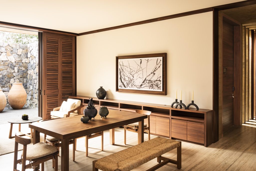 Asimismo, la ambientación y los materiales del resort hacen eco del paisaje: tonos terrosos, texturas naturales y grandes ventanales para maximizar la conexión interior-exterior.