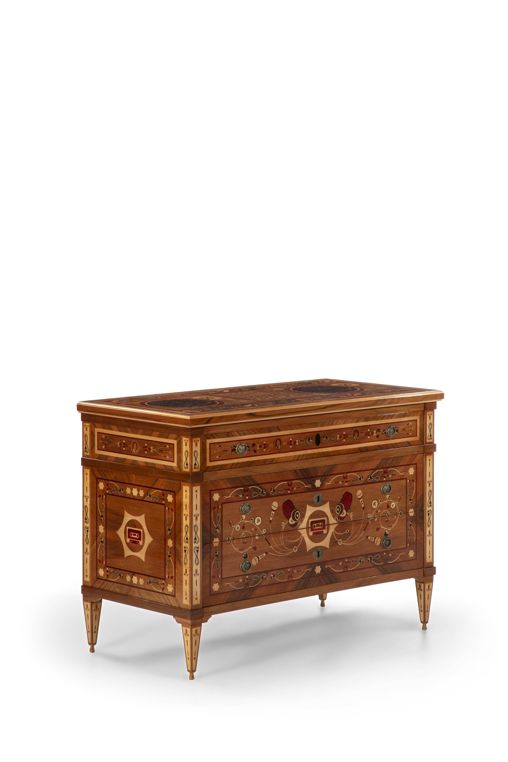 Presentada en el marco de Milan Design Week 2026, la pieza parte de un arquetipo preciso: la cómoda Luis XVI inspirada en la tradición lombarda de Giuseppe Maggiolini.