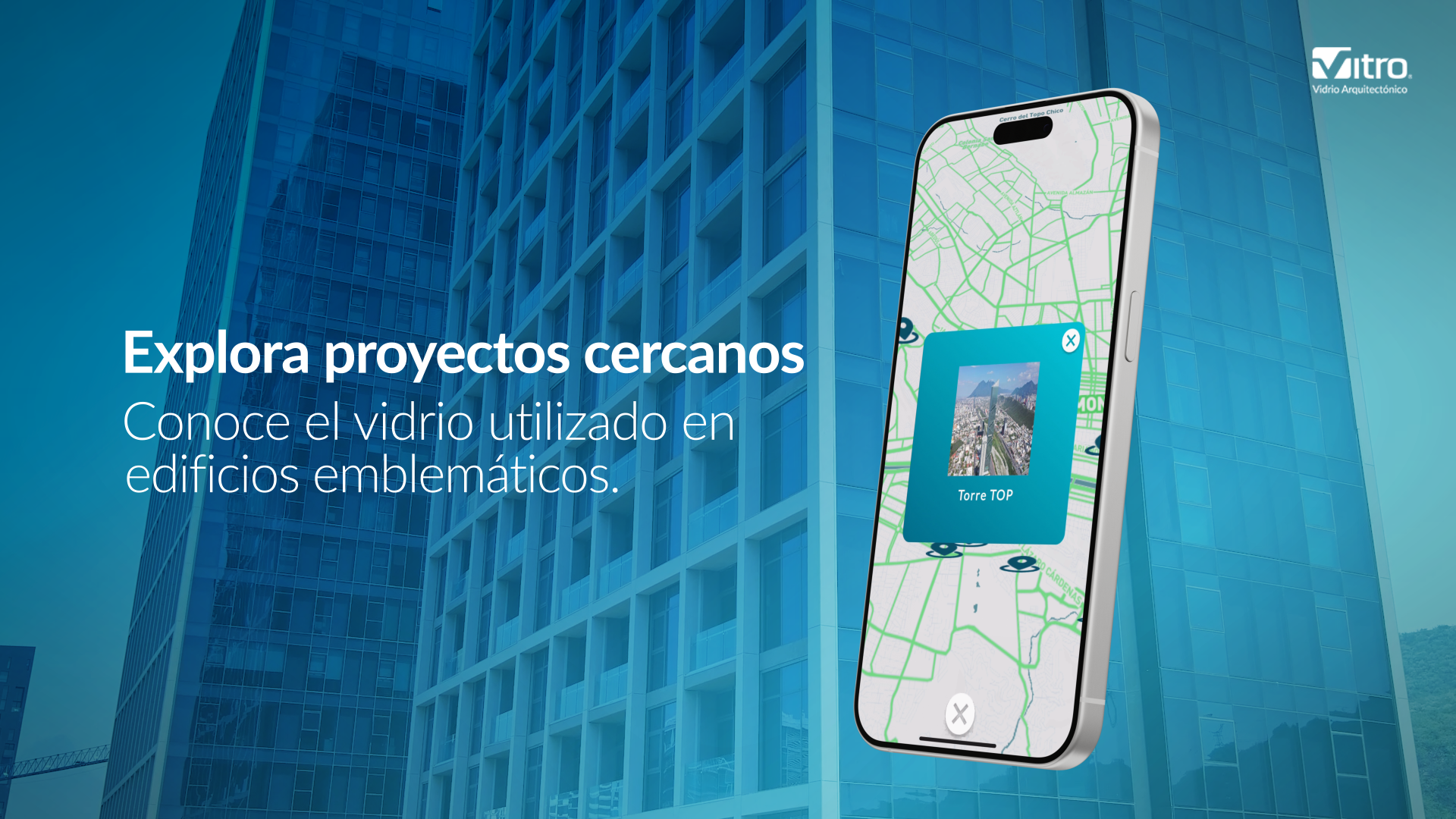 A través de un mapa interactivo, puede descubrir ubicaciones con fachadas, ventanas y otros elementos arquitectónicos de vidrio Vitro. Con esta herramienta puedes ver los edificios cercanos o aleja la vista para explorar proyectos en diferentes ciudades.