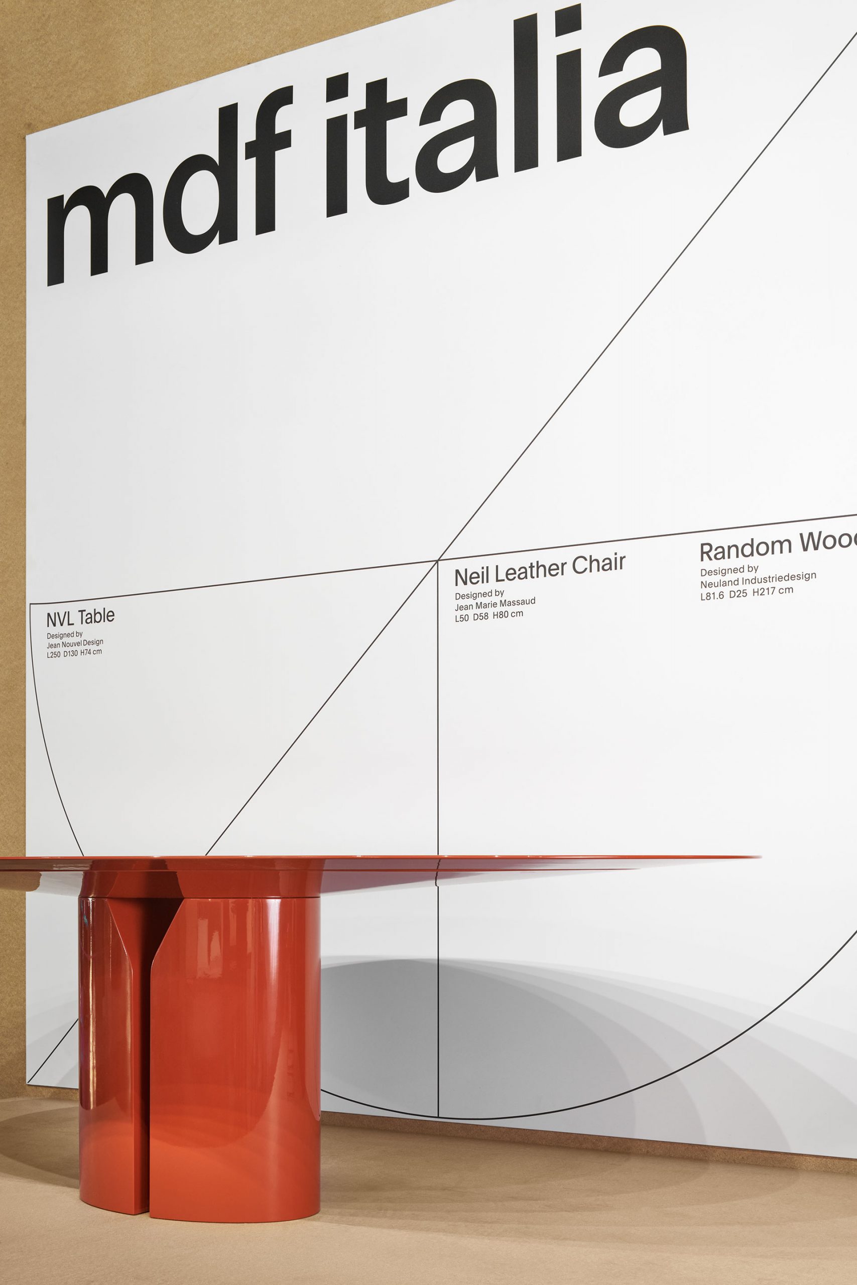 Una mesa monomateria, de línea contemporánea, caracterizada por una fuerte personalidad: NVL Table es el segundo proyecto (después de Super Position) firmado por el diseñador francés Jean Nouvel para MDF Italia, del que toma literalmente su nombre.
