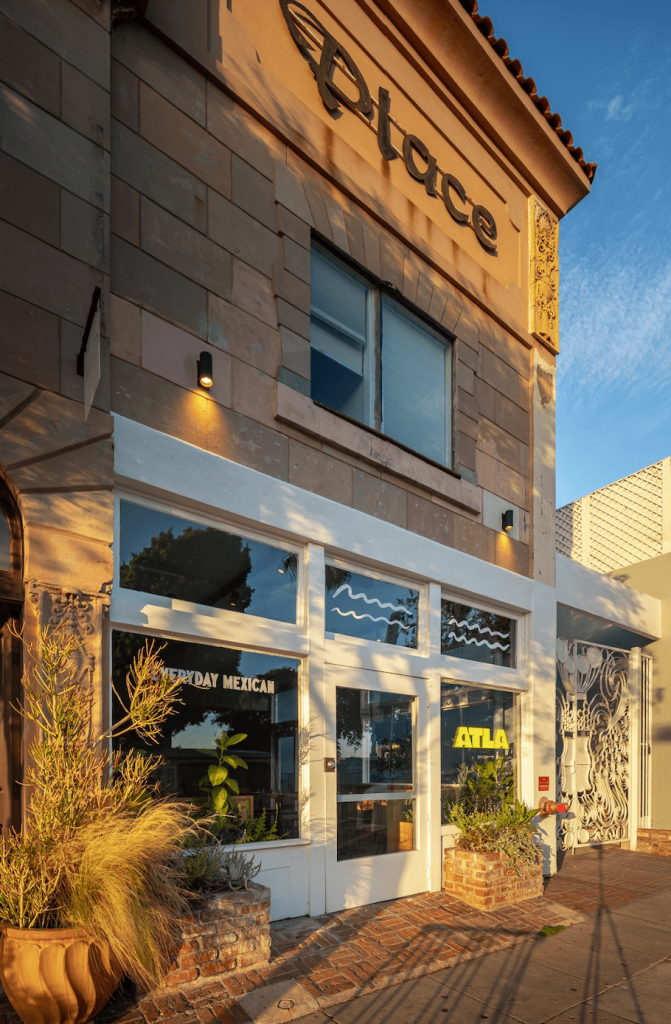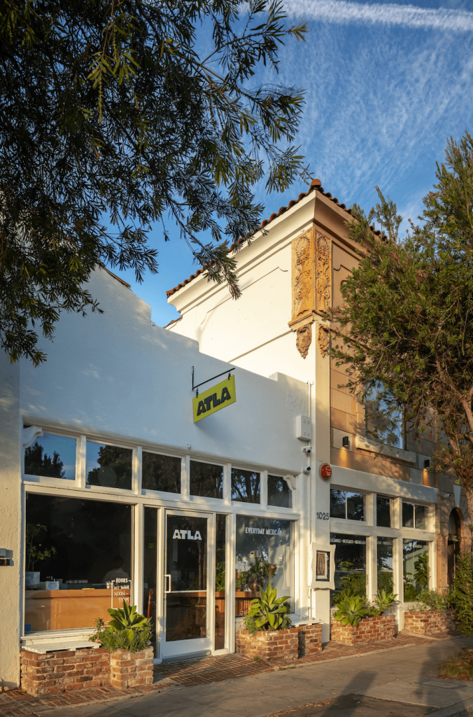 Ubicado en una de las calles más importantes del distrito de Venice Beach en los Ángeles, Atla se alberga en una casa construida en los años cincuenta. Es un espacio compuesto por dos niveles en donde el restaurante se encuentra en la planta baja, abarcando su totalidad y creando un patio y un callejón rodeados de macetas y vegetación.