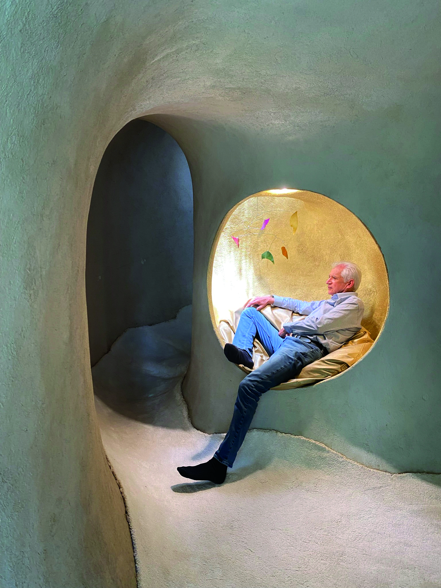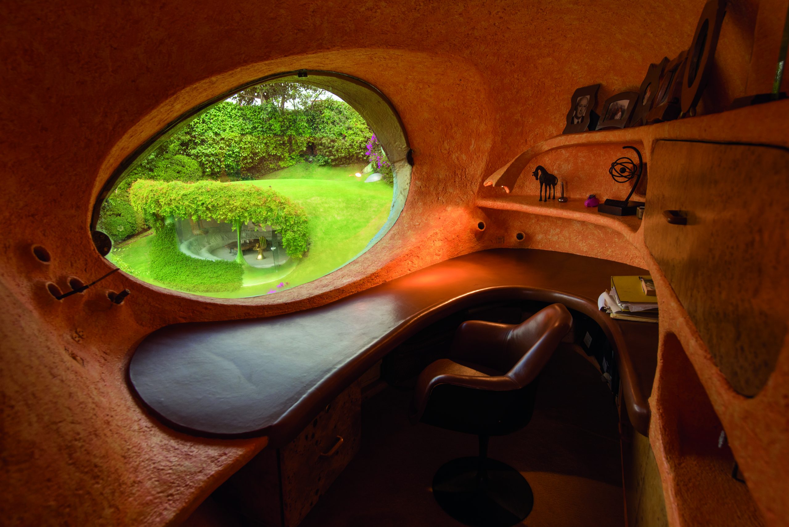 El sueño de vivir dentro de una cueva y de reconectar con lo natural fue el motivo para construir esta casa. Cuatro décadas después, el lugar sigue fascinando a quienes tienen la oportunidad de conocerla. Su concepto elemental: un espacio para convivir que busca la sensación de que en el interior la persona se adentra en la tierra, describe Javier Senosiain.