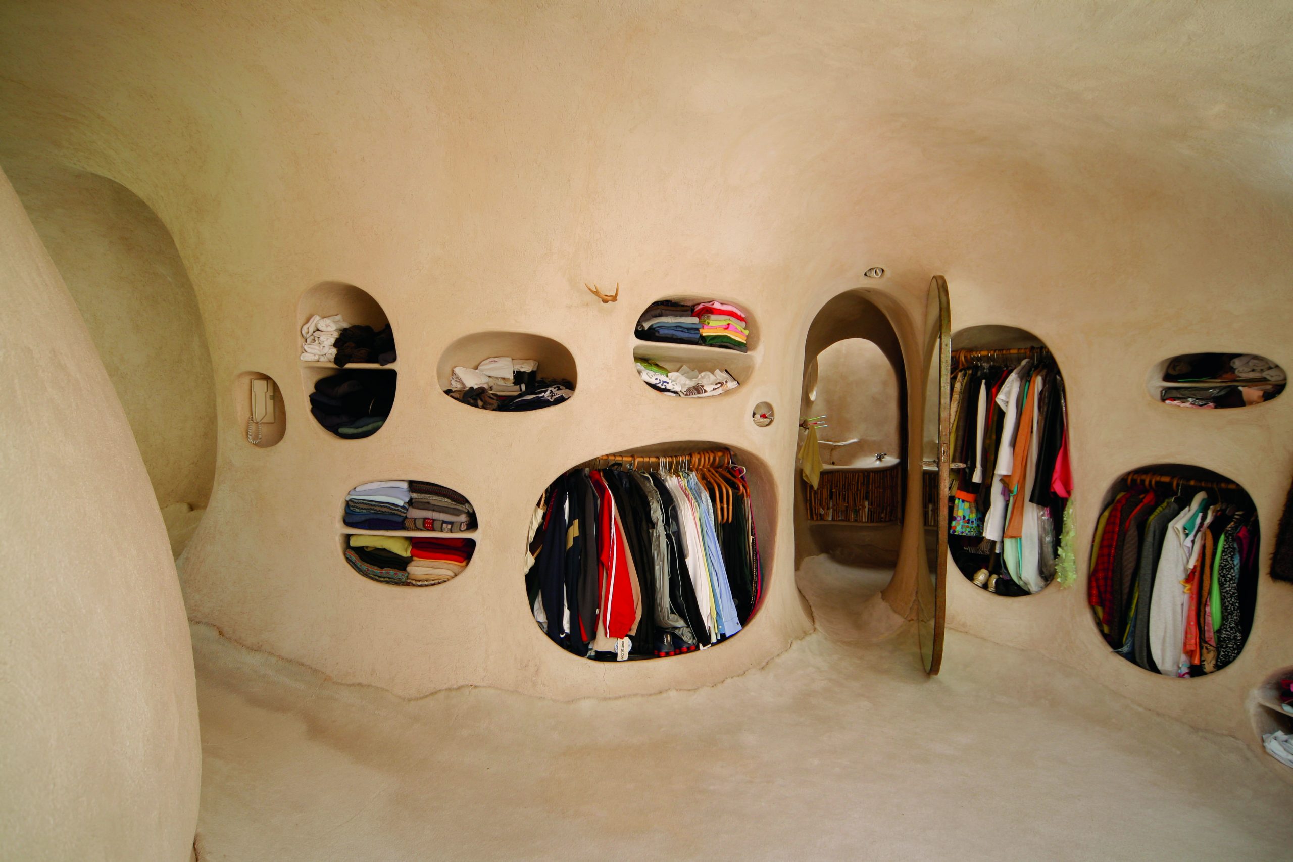 De la casa ya se han escrito cientos de artículos, sabemos que tiene forma de embrión, que está semienterrada bajo la tierra, que fue construída en ferrocemento y que busca conectar con el origen, con lo natural, pero,¿cómo se vive una casa así? La preguntaadmite el arquitecto Javier Senosiain quizá deberían responderla más su esposa Paloma y sus hijas. «Para mí, desde la investigación, estaba muy convencido. De hecho, nunca hicimos un cambio».