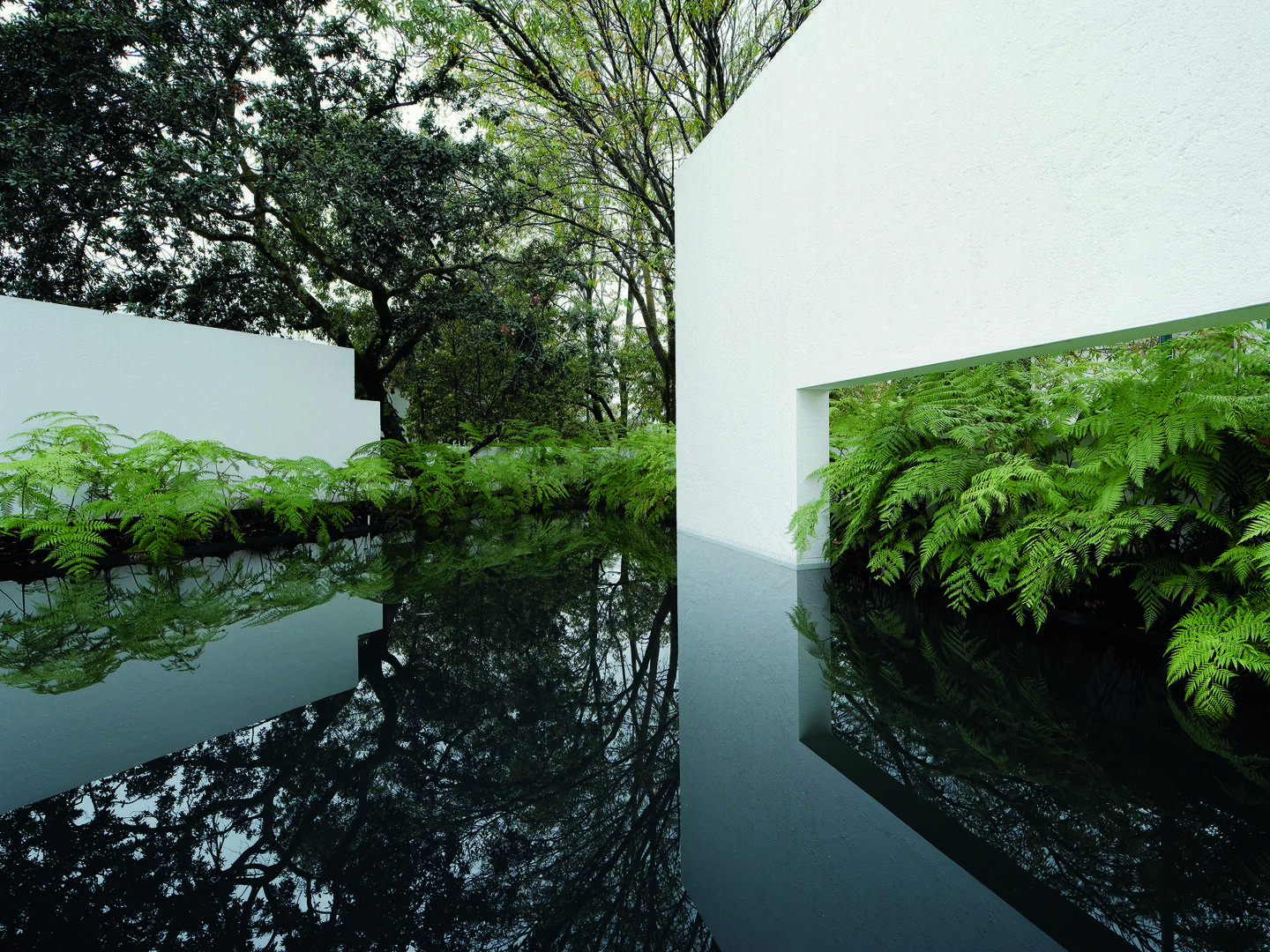 Detrás de una fachada serena, en una calle arbolada y discreta de la colonia Bosques de las Lomas en la Ciudad de México, se descubre un espacio que ensambla tres casas y un estudio. Ahí, fuentes, espejos y luz se entrelazan como un constante recurso natural para hacer que el reflejo agudice aún más el entorno casi siempre verde con el que se convive en su interior. Es la casa-estudio de Miguel Ángel Aragonés, construida hace más de dos décadas, pero en la que él y su esposa han vivido los últimos diez años.