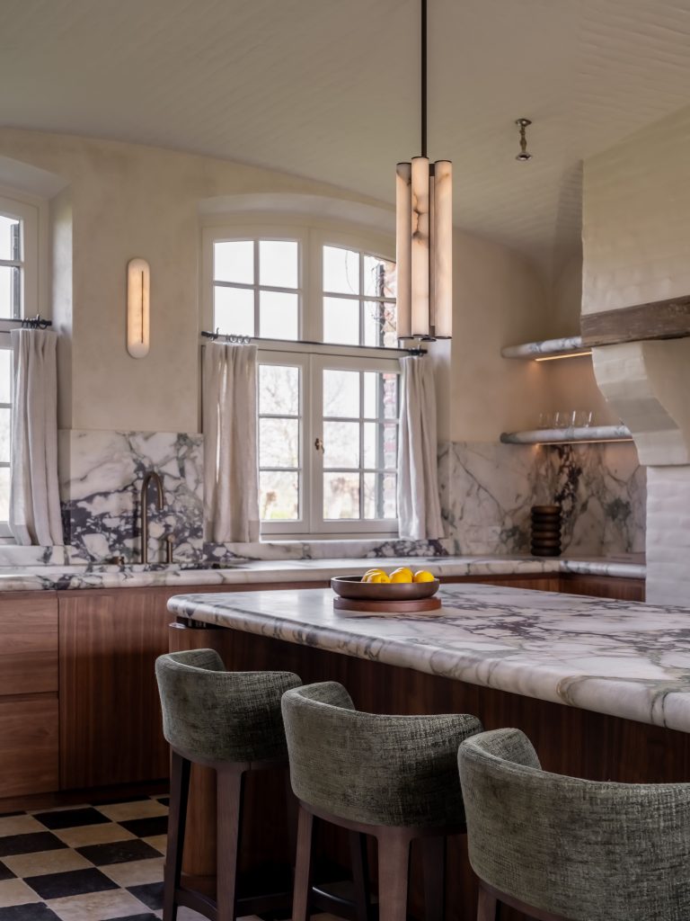Este enfoque rompe con la idea tradicional de casa de campo luminosa y abierta, apostando por una narrativa más sensorial y envolvente.