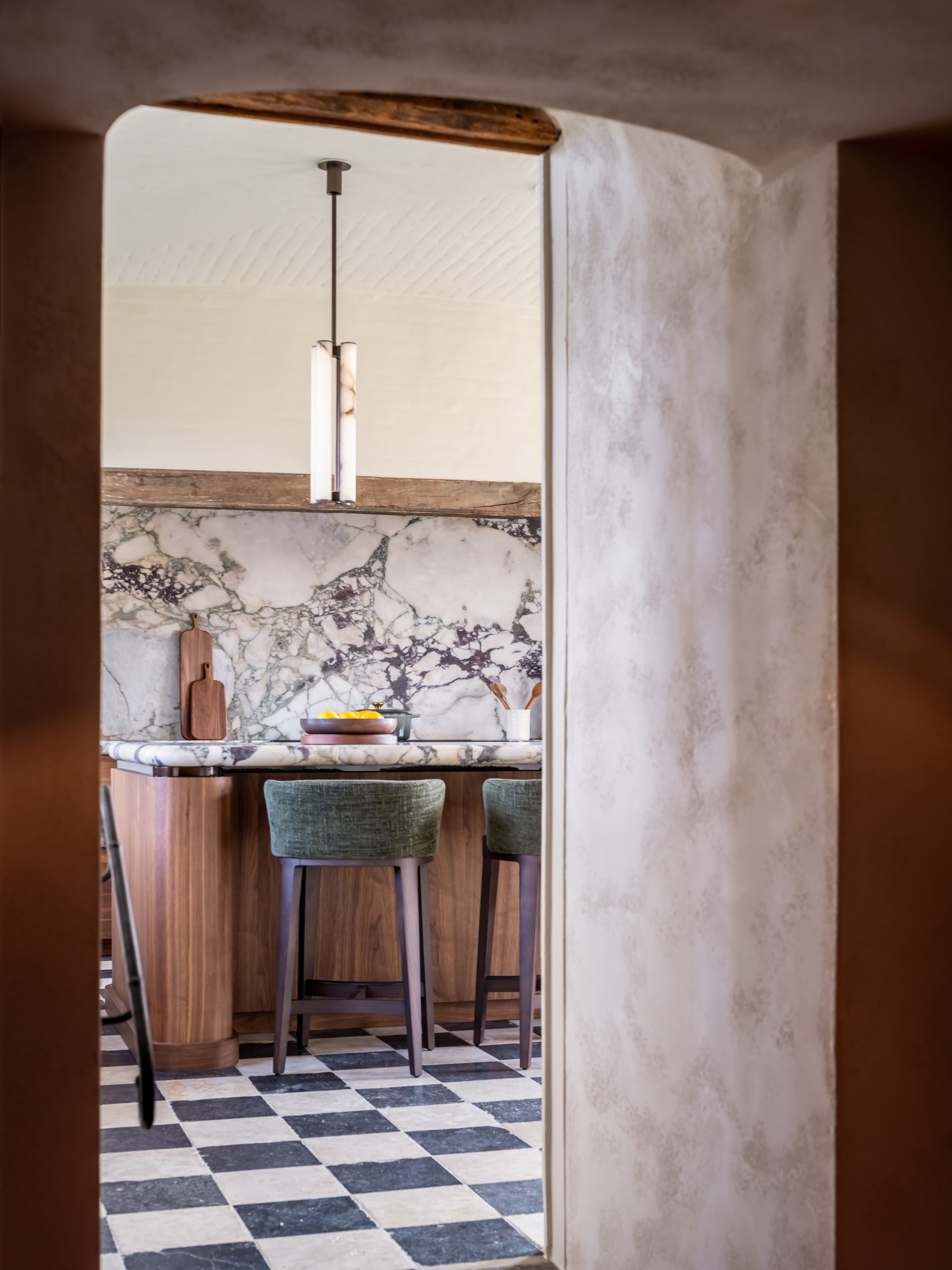 Lejos de una restauración nostálgica, la intervención propone una reinterpretación radical del interior, donde la casa deja de ser únicamente refugio para convertirse en un escenario.