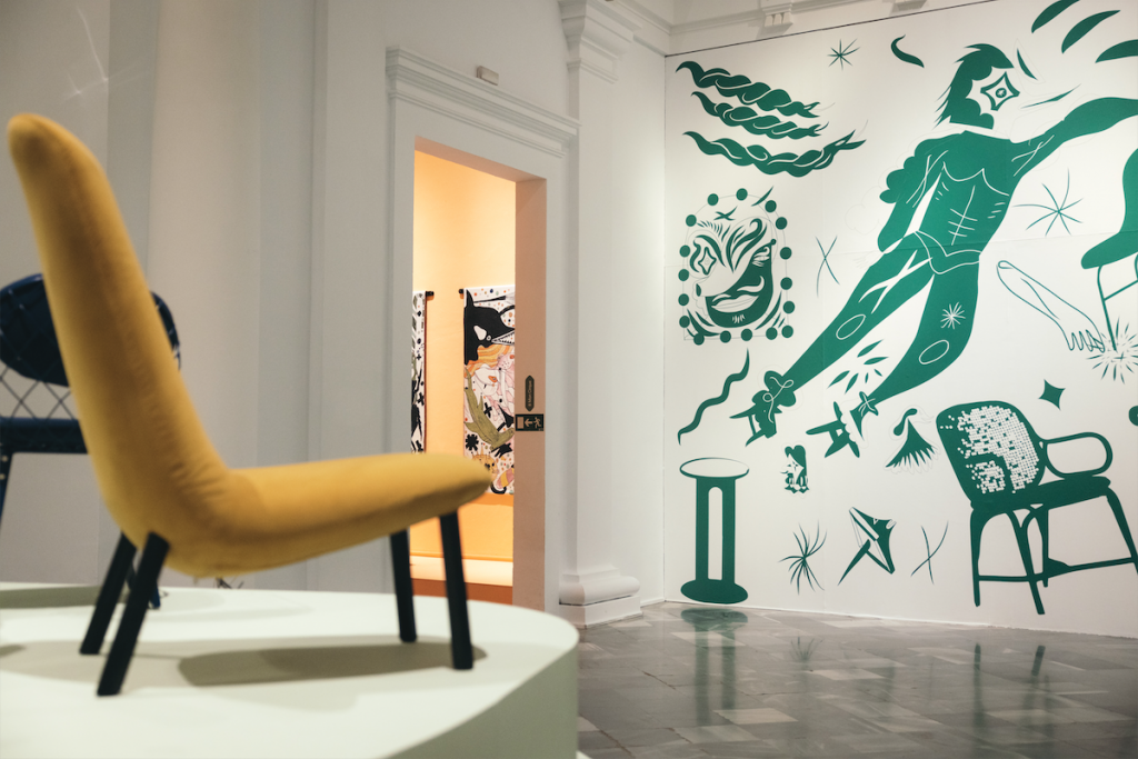 Esta muestra exhibe una selección de la obra más reconocida del creador, tanto en la esfera de instalaciones y piezas artísticas como en la de productos para empresas. La muestra incluye también trabajos que nunca se han presentado en España como “Masquemask” —una muestra de 7 máscaras-tapiz de gran formato concebida para el LODZ Design Museum— o “Mediterranean Digital Baroque” —una de las primeras exposiciones del diseñador—, así como obra pictórica de gran formato y esculturas.