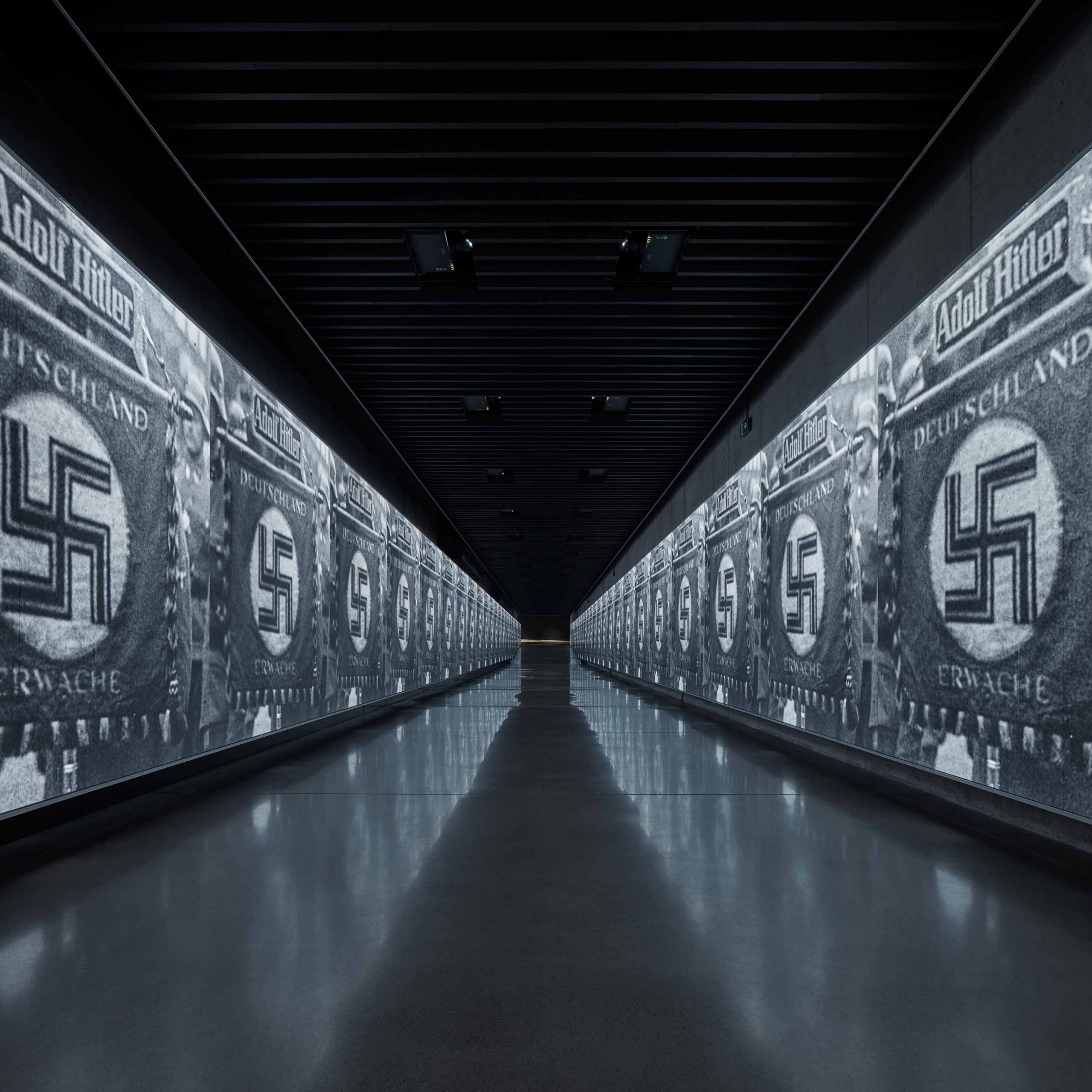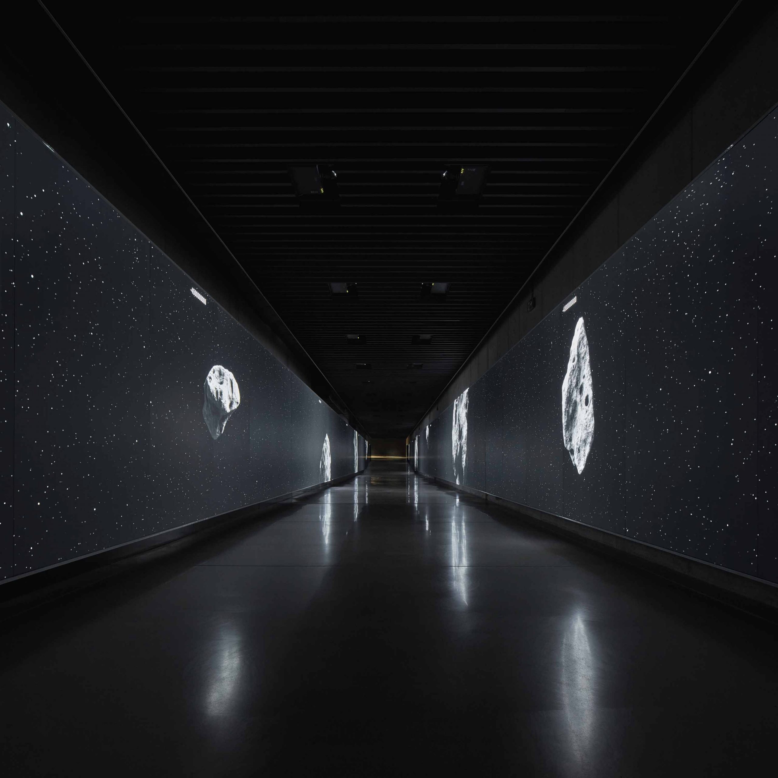 Para ser suficientemente auténtico, las tecnologías audiovisuales más modernas tenían que combinarse con parámetros técnicos respetables; por lo que, el corredor de 56 metros de largo está cubierto por ambos lados con una proyección continua con una superficie de casi 270 m2, equipada con un total de 38 proyectores láser con lentes de espejo ultracorto.