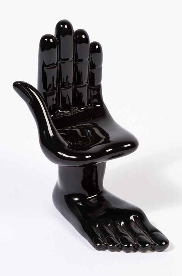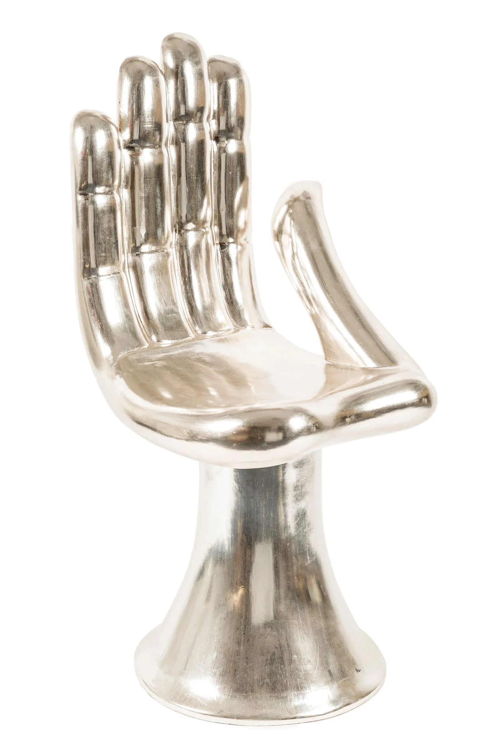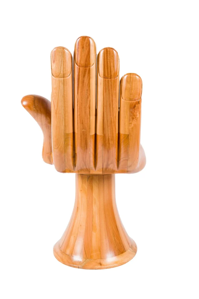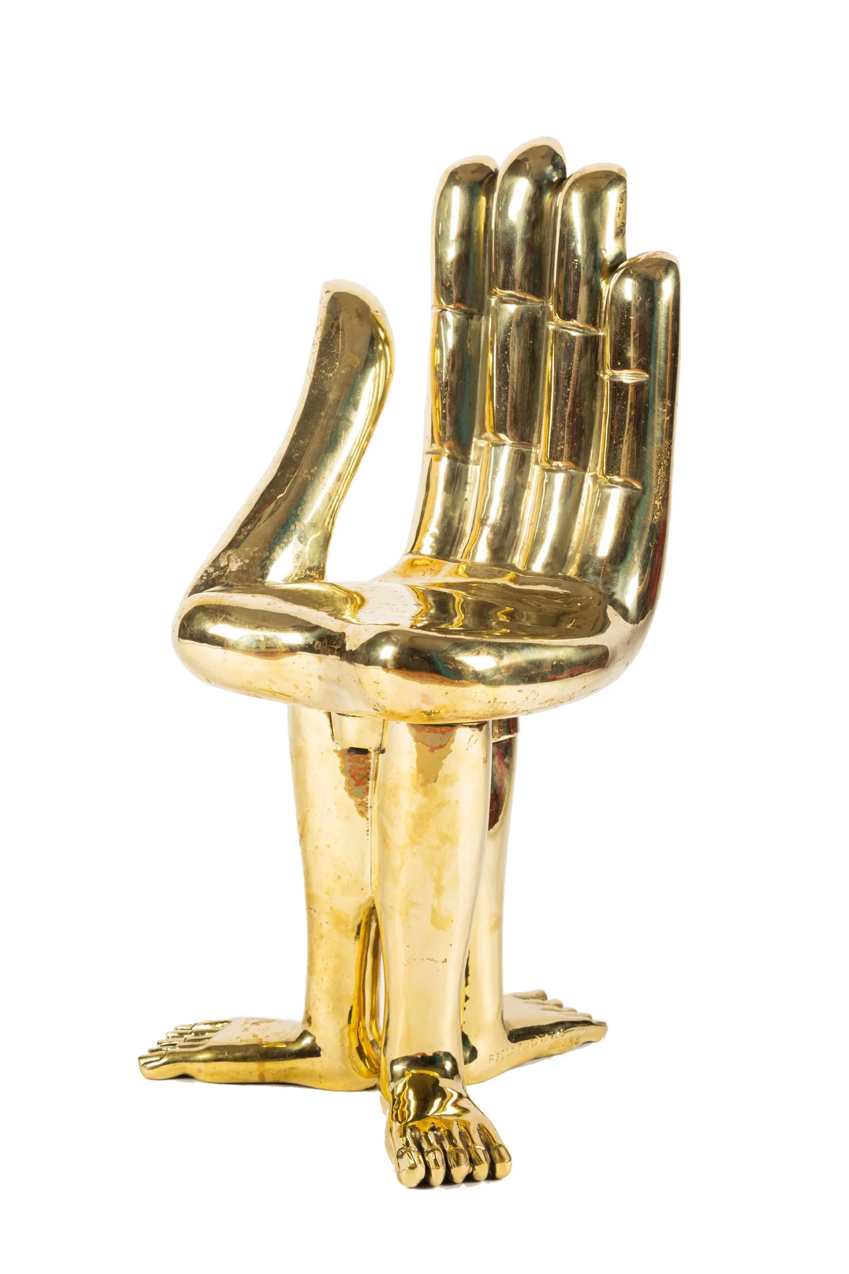 Entre sus múltiples creaciones, la Silla Mano, diseñada en 1962, se convirtió en una de las piezas más icónicas del diseño del siglo XX. La escultura-mueble —una mano monumental cuya palma funciona como asiento— sintetiza la esencia de su trabajo: un equilibrio entre humor, surrealismo y una estética deliberadamente excesiva.