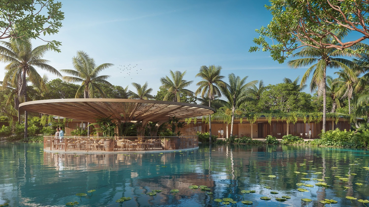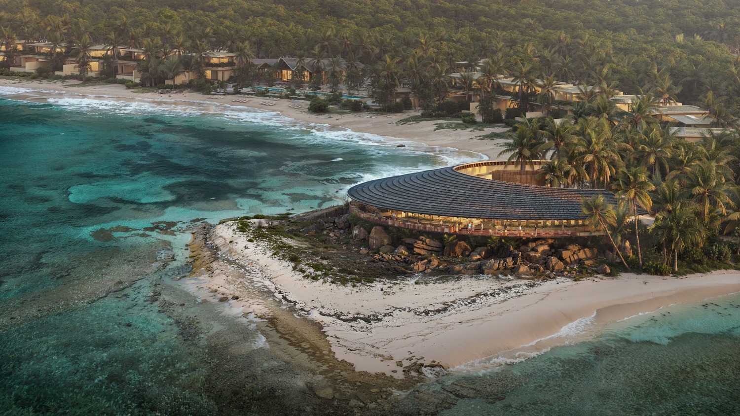 El master plan de 130 hectáreas fue concebido por TAHR Arquitectura con la premisa de que cada espacio conecte a los huéspedes con la esencia de la isla.