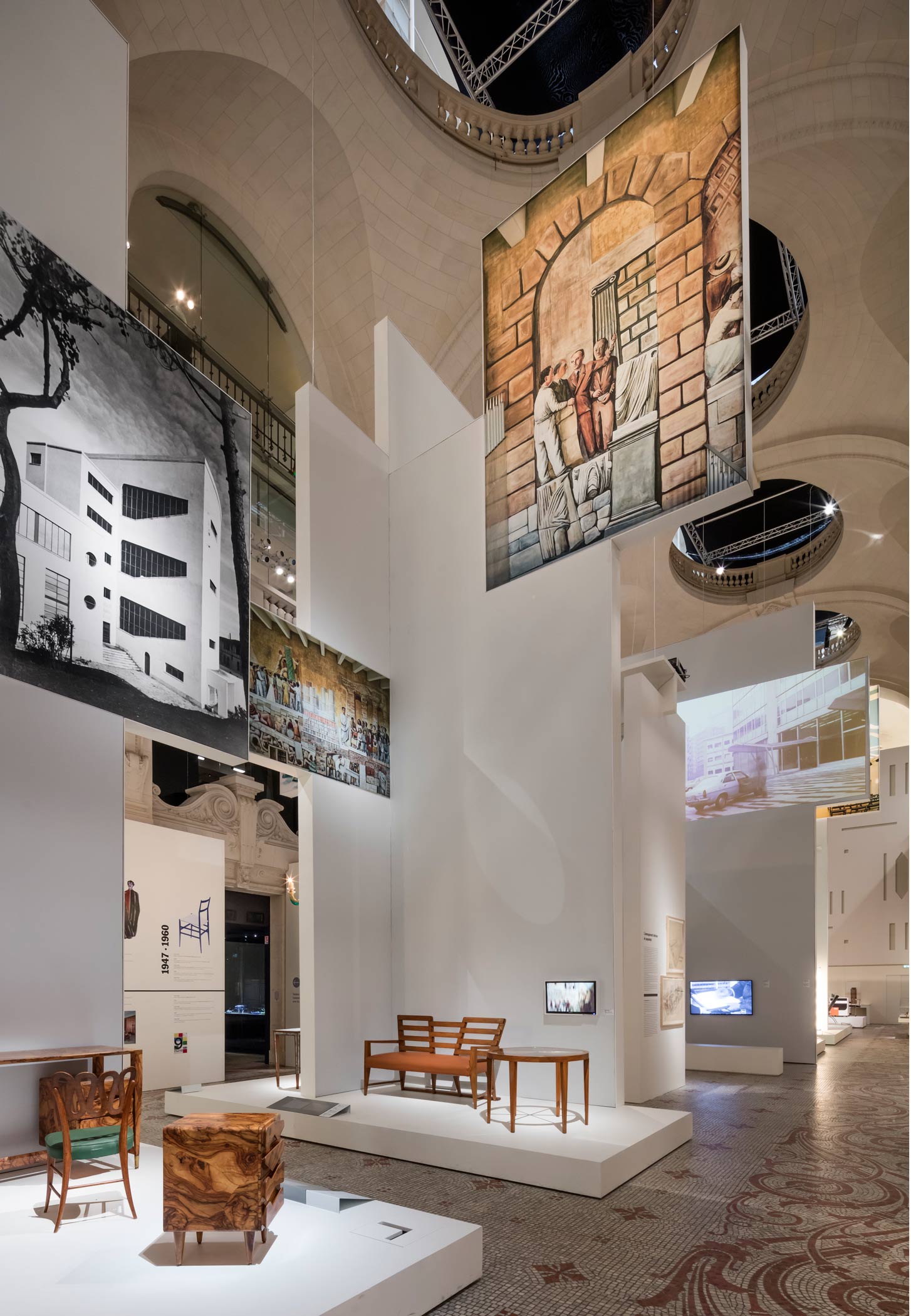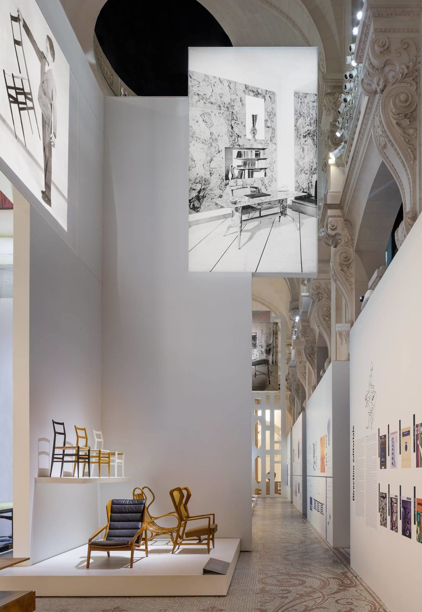 La muestra, concebida por la agencia Wilmotte & Associés en colaboración con el diseñador gráfico Italo Lupi, se conforma por más de 400 piezas ordenadas de manera cronológica a lo largo de seis décadas de trabajo del diseñador e incluye muebles y complementos desarrollados por Ponti, así como retrospectivas de su trabajo en el ámbito de la arquitectura: viviendas particulares y edificios públicos, universidades y catedrales.