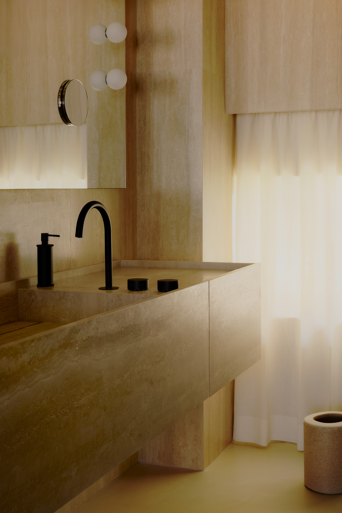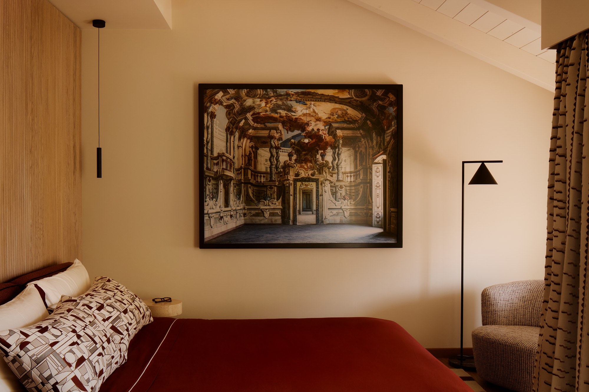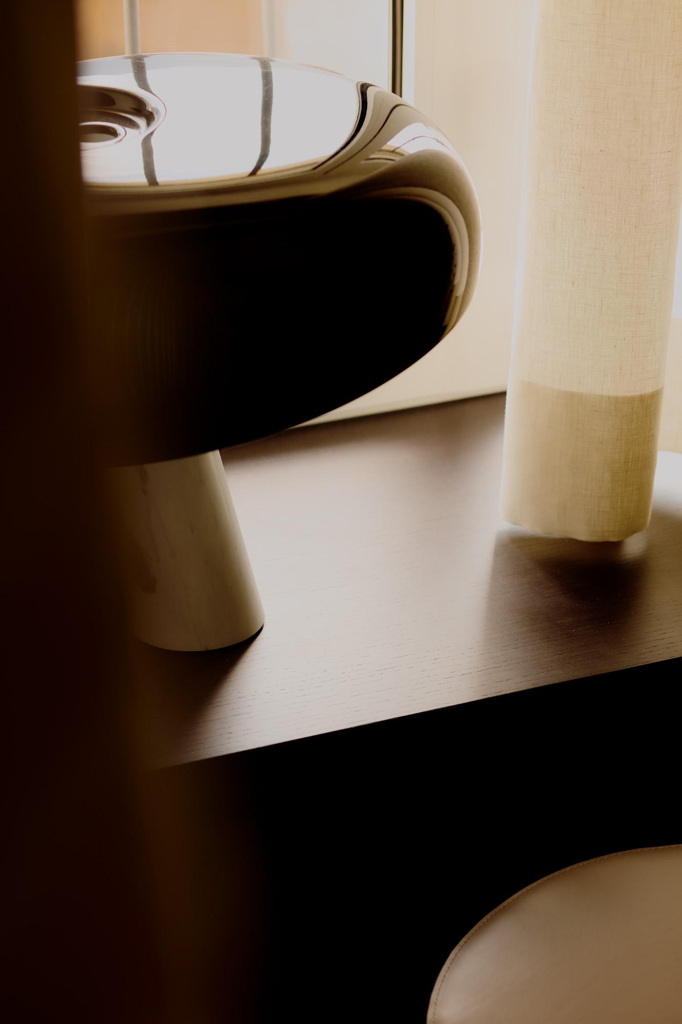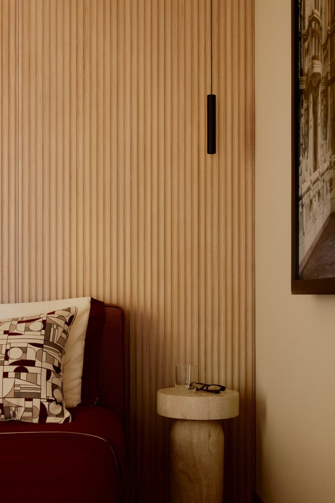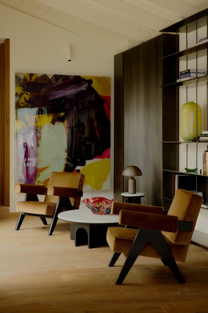 La luz natural define volúmenes y acentúa la textura de los materiales. Cada superficie, desde el mármol hasta la madera, participa en un diálogo entre función y atmósfera. Las obras de arte —seleccionadas tanto por el cliente como por el estudio— aportan una dimensión narrativa al conjunto, marcando el ritmo visual de los interiores.