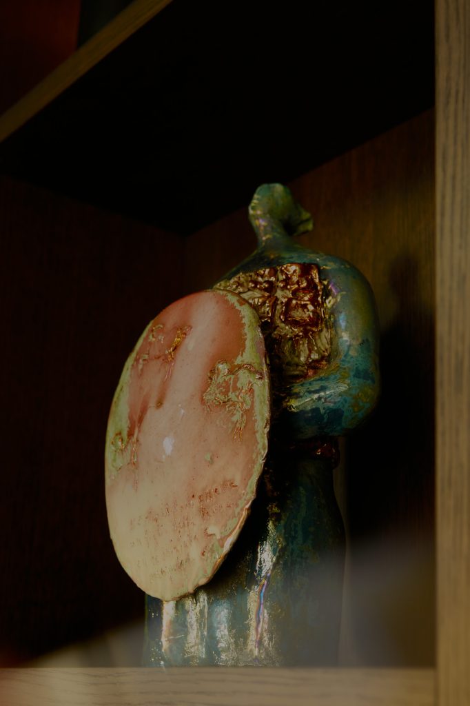 Los tonos oscuros, la iluminación tenue y los materiales naturales refuerzan el carácter introspectivo del espacio, pensado para la pausa y la conversación.
