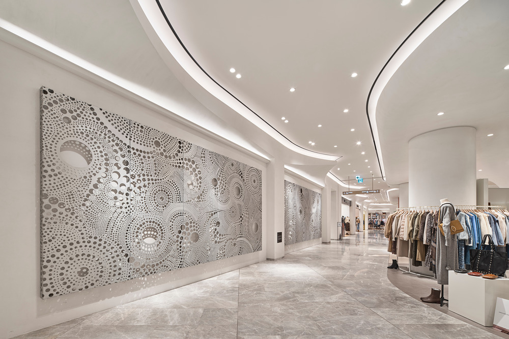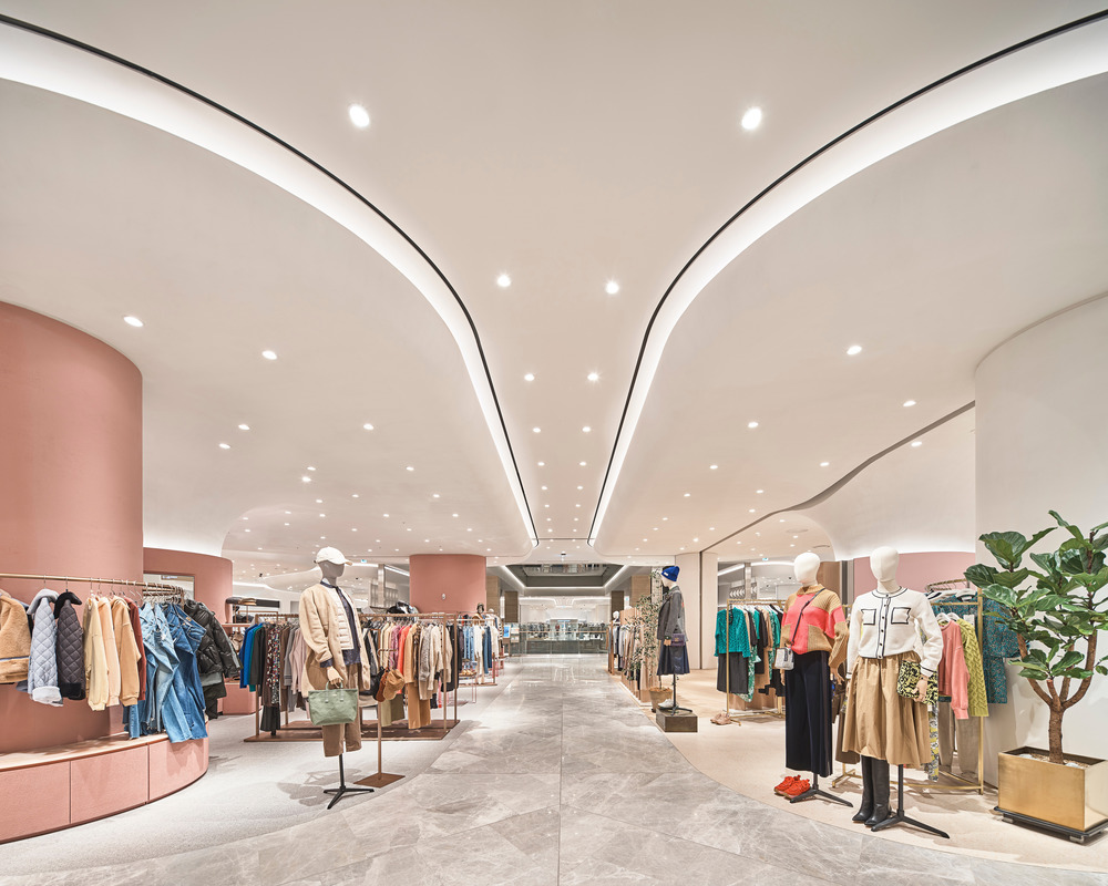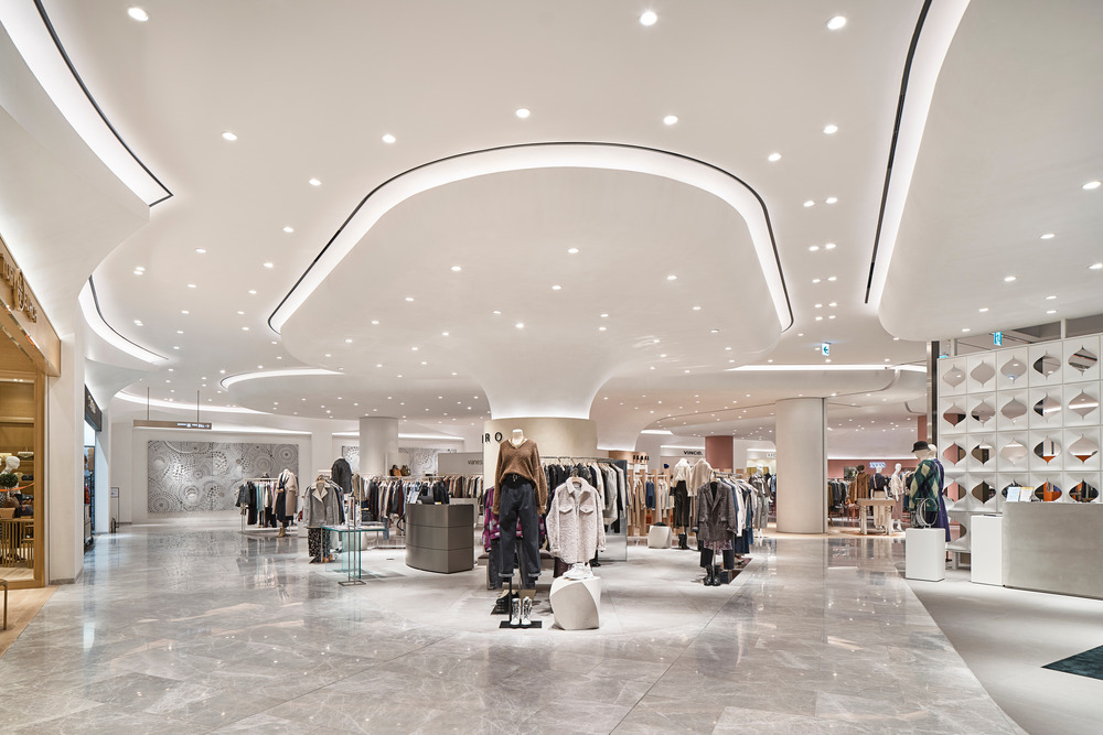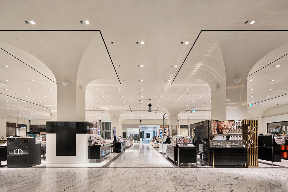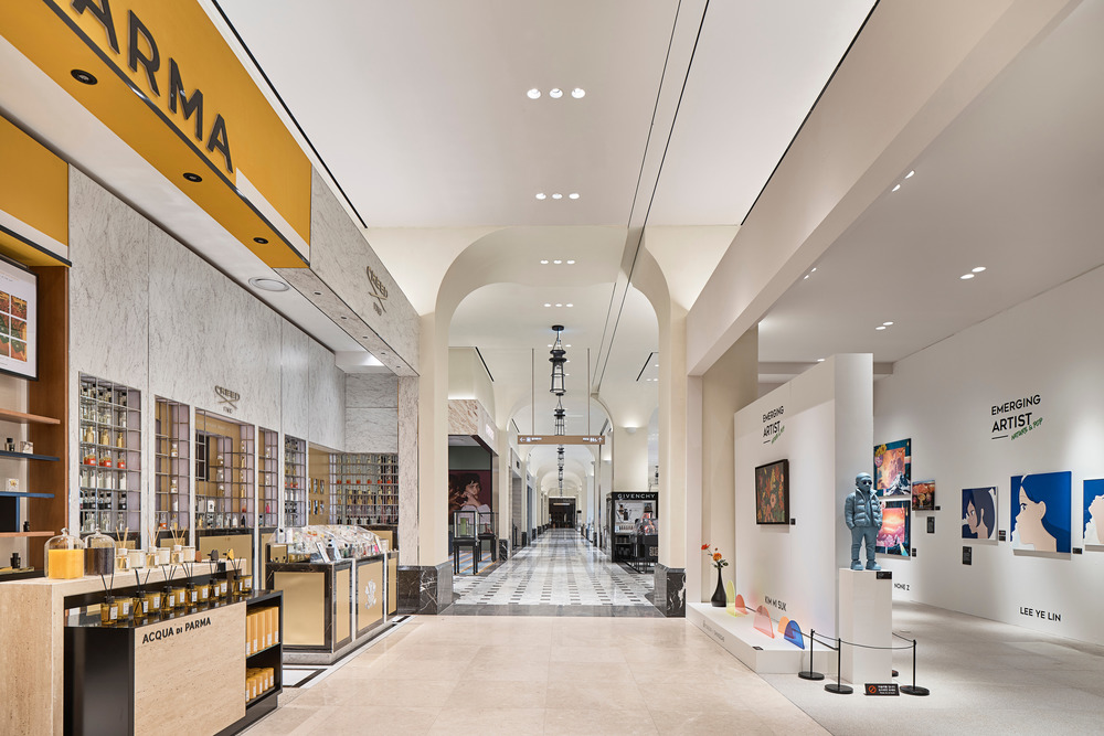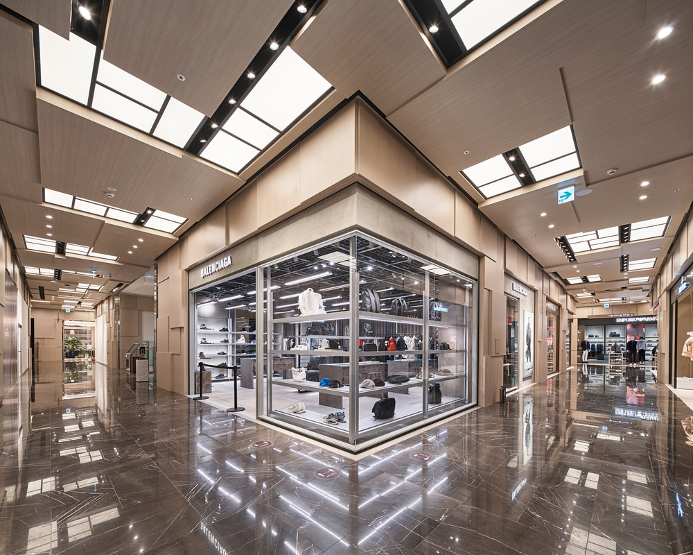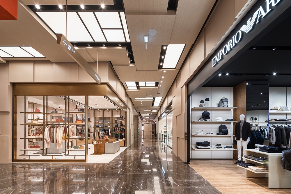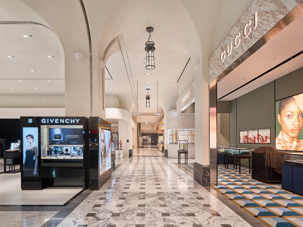 La firma neoyorquina Jefferey Hutchison and Associates (JHA) –especializada en tiendas demoda, lujo, belleza y joyería– ha reinterpretado las dos plantas de un Centro Comercial que alberga marcas de accesorios de lujo de primera línea, como Fendi, Bottega Veneta y Saint Laurent, además de joyería y más de 40 marcas de belleza como Gucci Beauty y Clé de Peau Beauté.