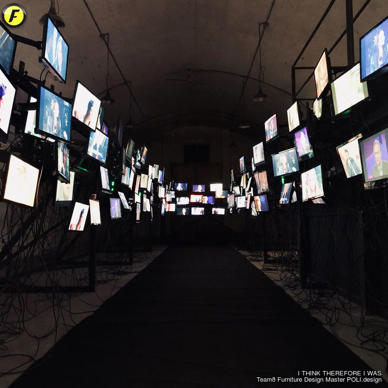 Un inquietante universo de pantallas que emiten continuamente breves extractos de programas de televisión, noticieros, entrevistas, telenovelas, series de televisión y películas en las que se pronuncia la expresión “I  think”, recuerdan la crisis del pensamiento contemporáneo y cuestiona, a su vez, nuestra habilidad para reflexionar sobre nuestras ideas en una época en la que el consumo de información se ha disparado.