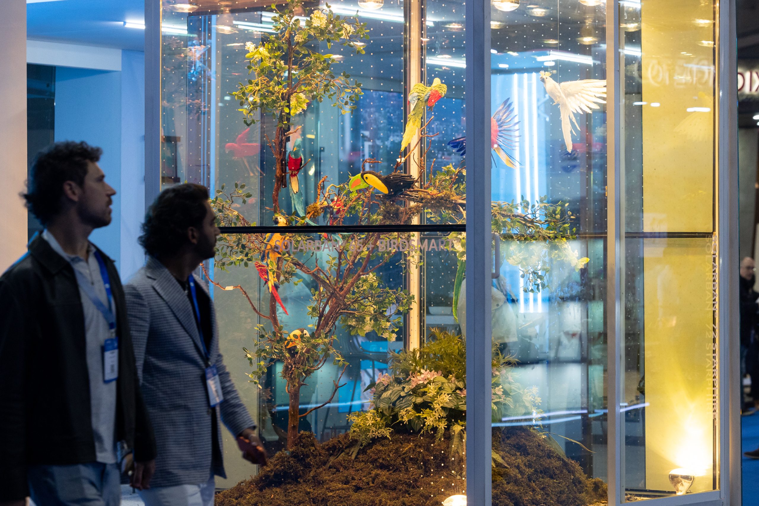 La cabina, ambientada como un aviario, también destacó los patrones grabados con láser de BirdSmart™, demostrando cómo los edificios modernos pueden proteger la fauna alada sin sacrificar diseño y funcionalidad.